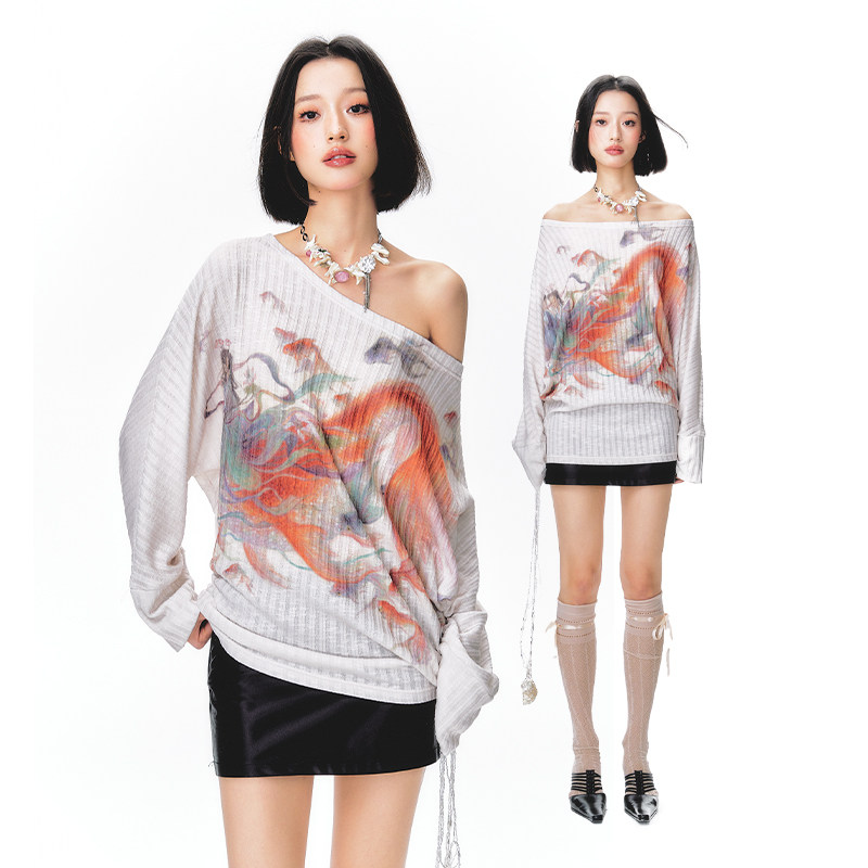 📚 杨二大梦原创x虢子楷艺术家联名款人鱼印花针织衫开春穿搭上衣