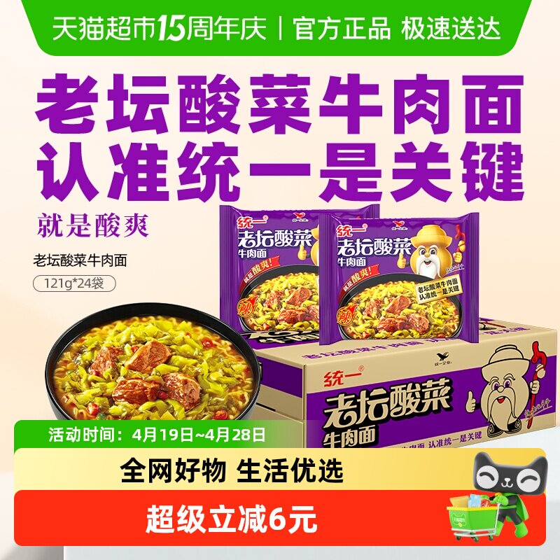 📚 统一老坛酸菜牛肉面方便面酸爽过瘾整箱泡面