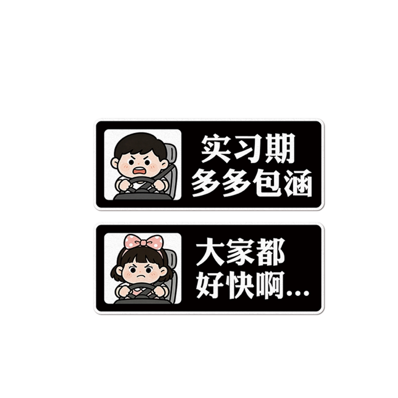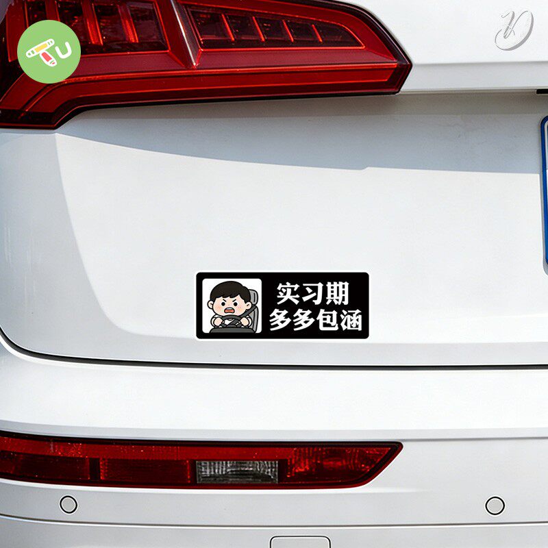 📚 卡通小人实习期多多包涵文字提示汽车摩托油箱反光划痕遮挡贴纸