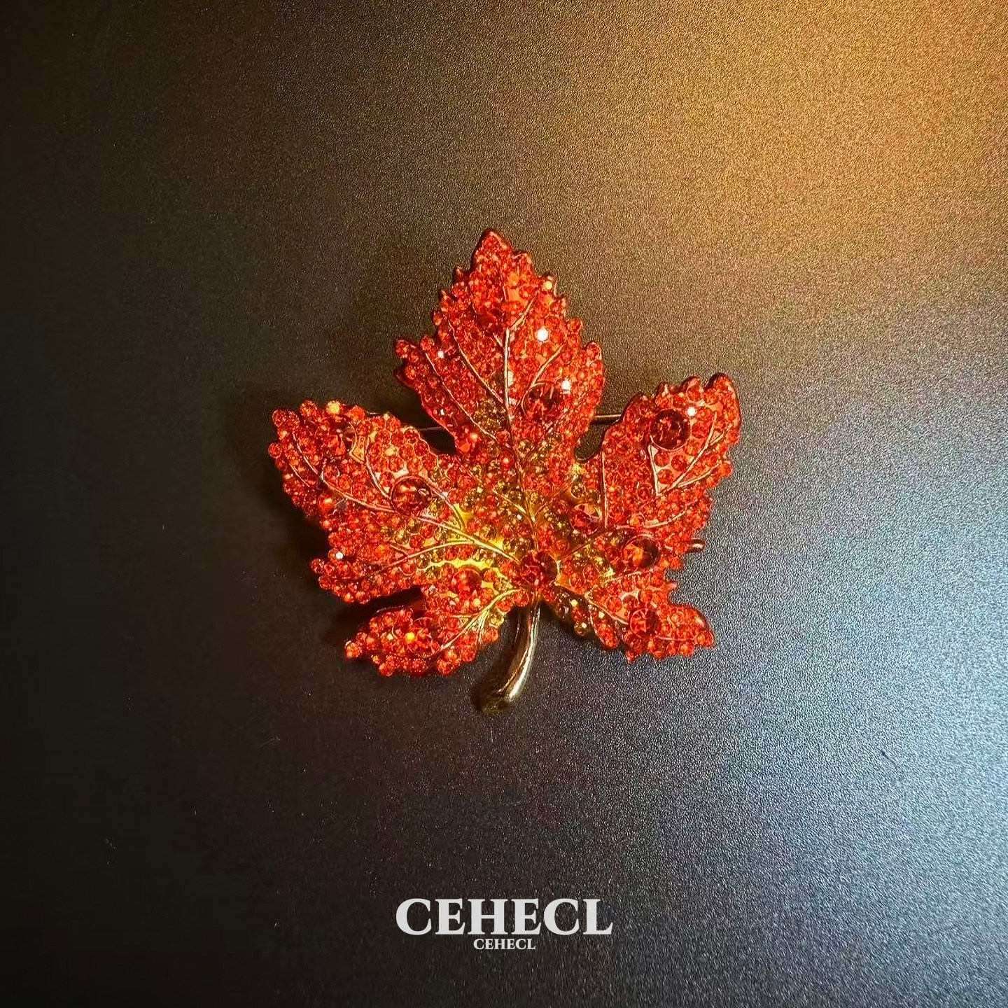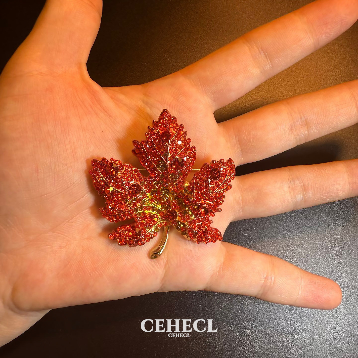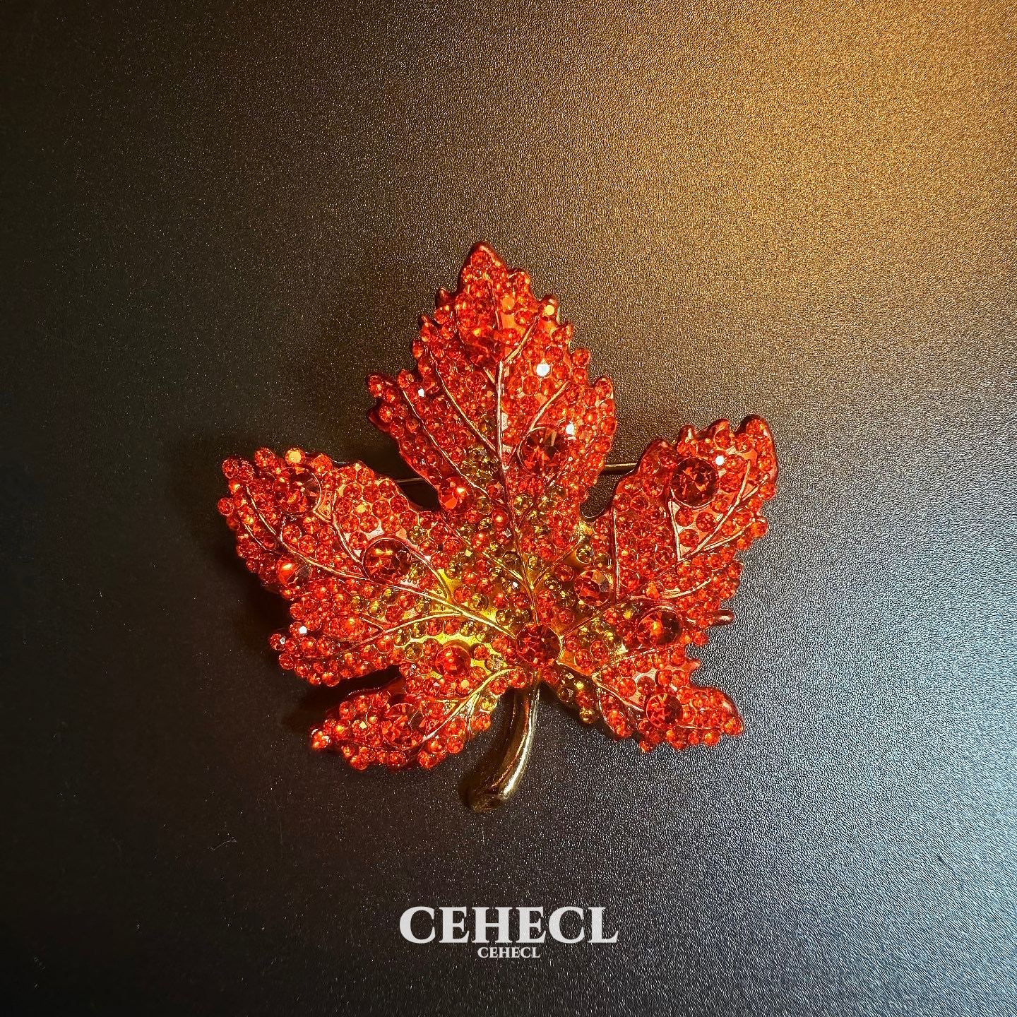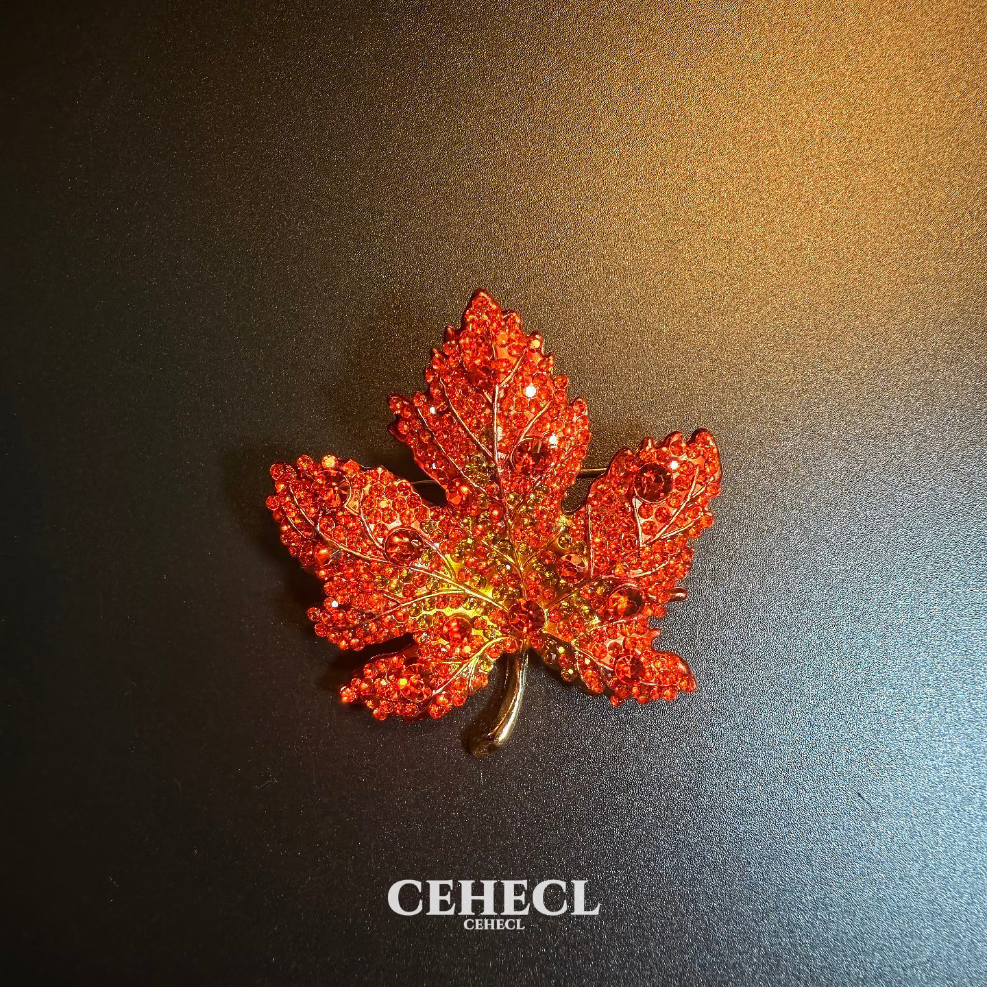 📚 胸针高档女精致红色枫叶防走光别针设计感小众胸花气质复古配饰品