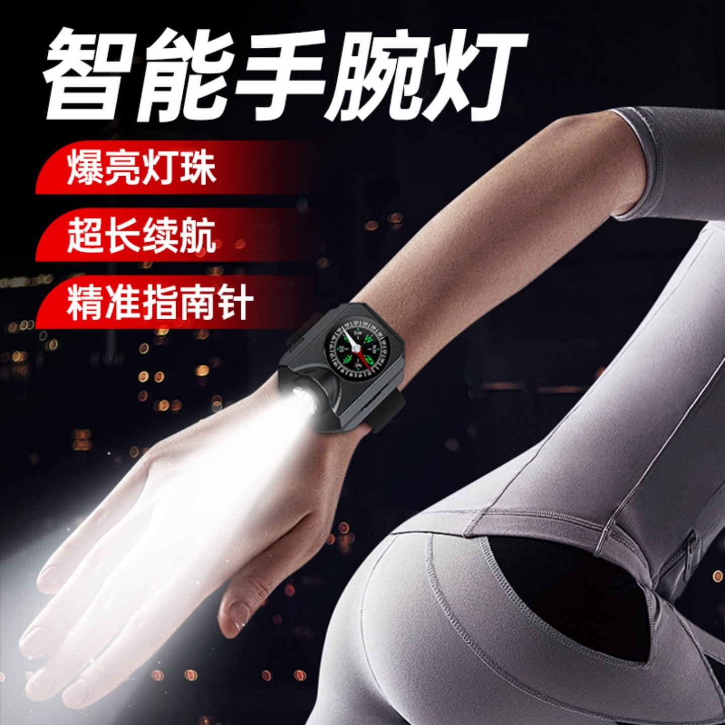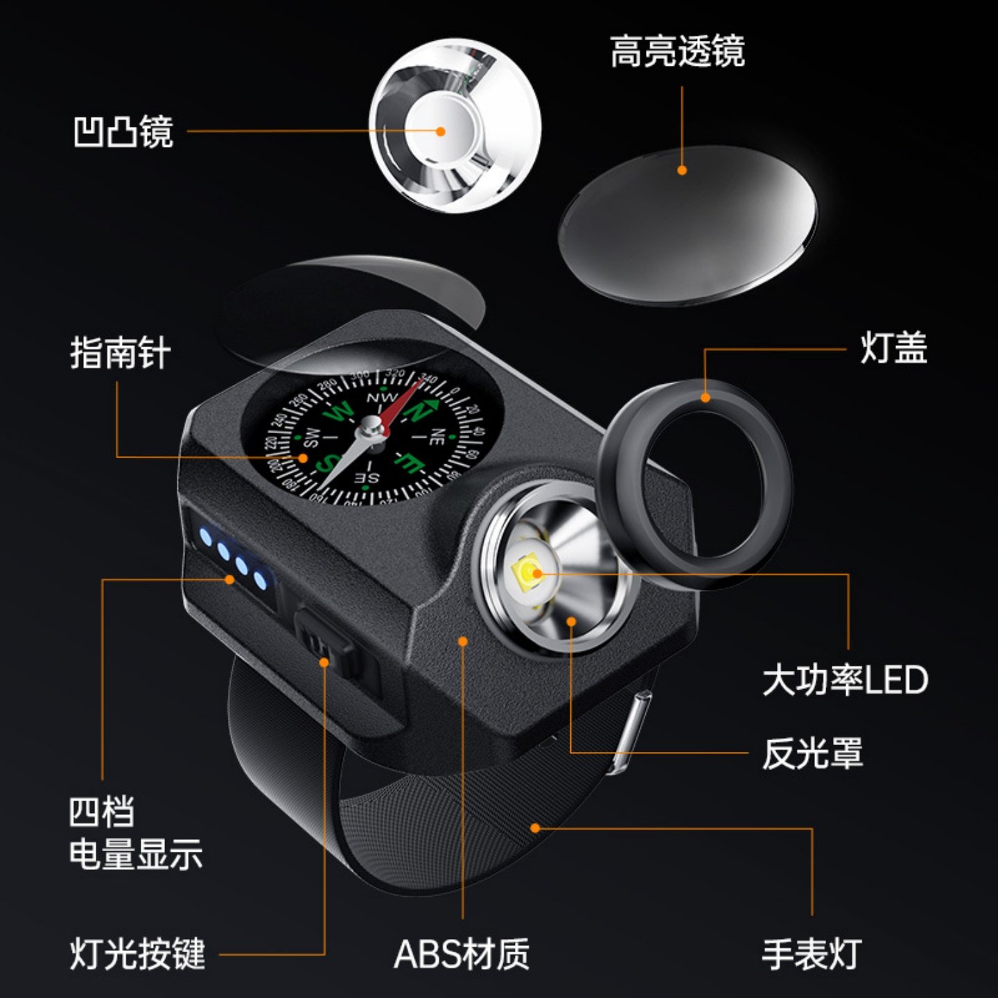 📚 高亮LED带电量显示手表灯带指南针户外登山夜跑多功能智能手腕灯