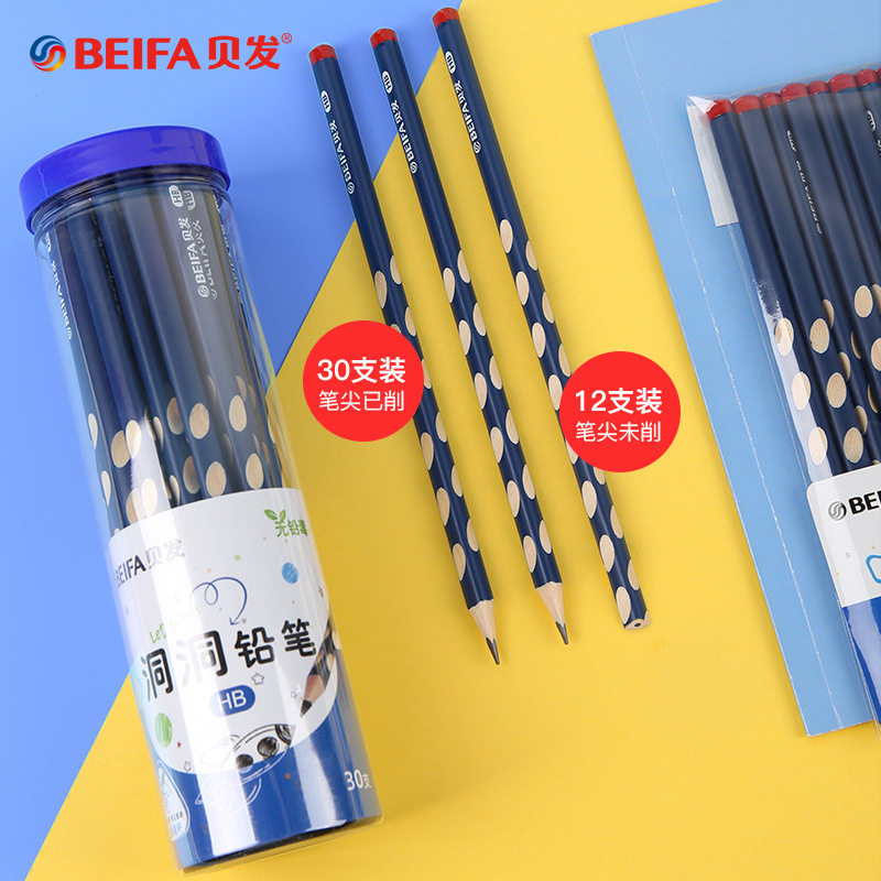 📚 贝发洞洞笔树脂铅笔安全无铅HB学生文具三角杆矫正握姿