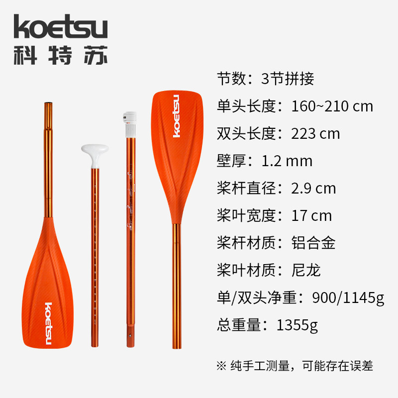 📚 KOETSU科特苏精品橙色单双头两用桨皮划艇SUP划桨海洋舟KAYAK船桨
