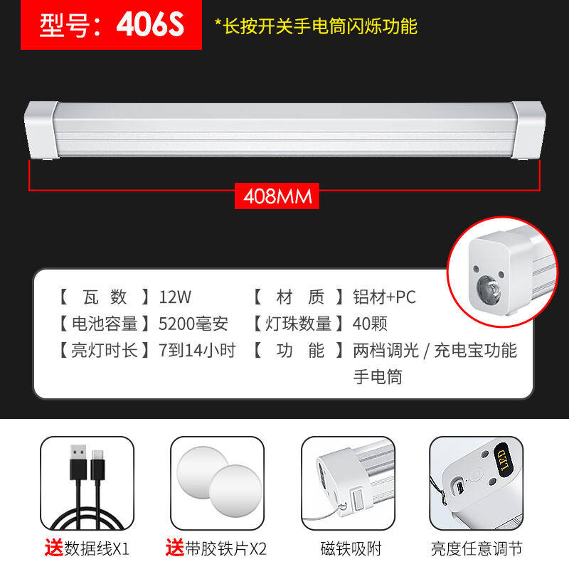 📚 探长充电LED条形灯台灯家用停电应急照明户外露营移动磁铁吸附摆