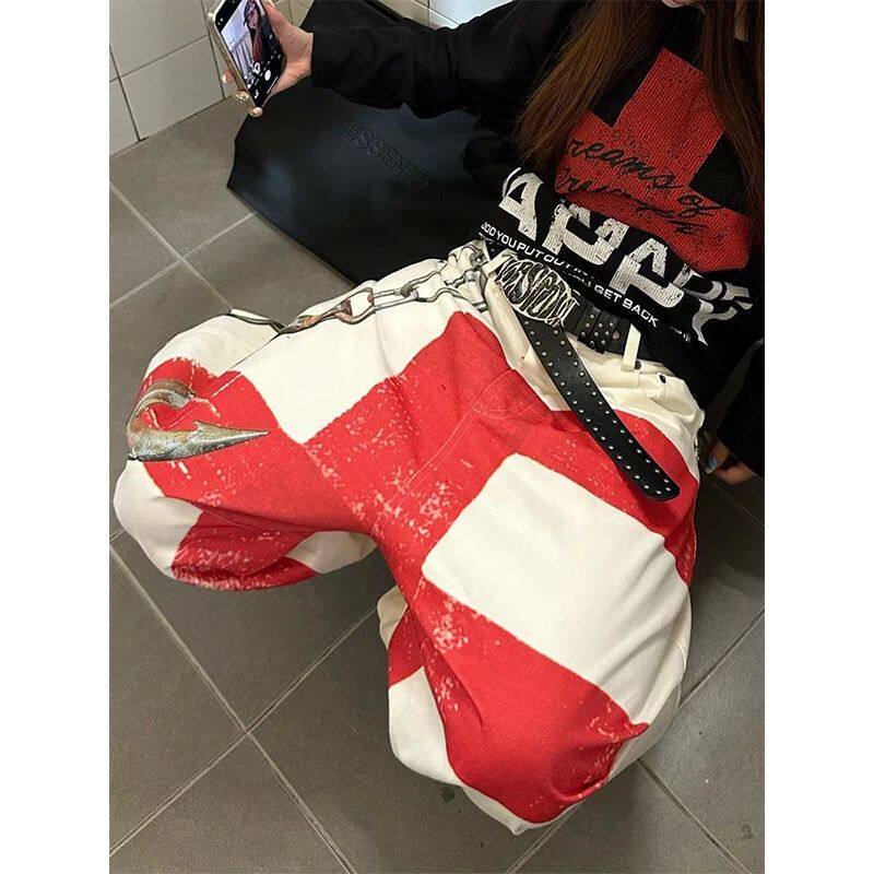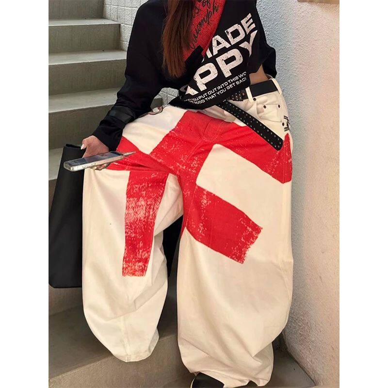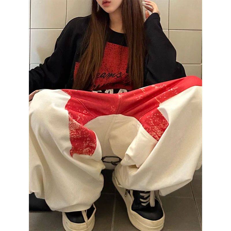 📚 印花拼接拖地裤Printed patchwork floor length pants for women