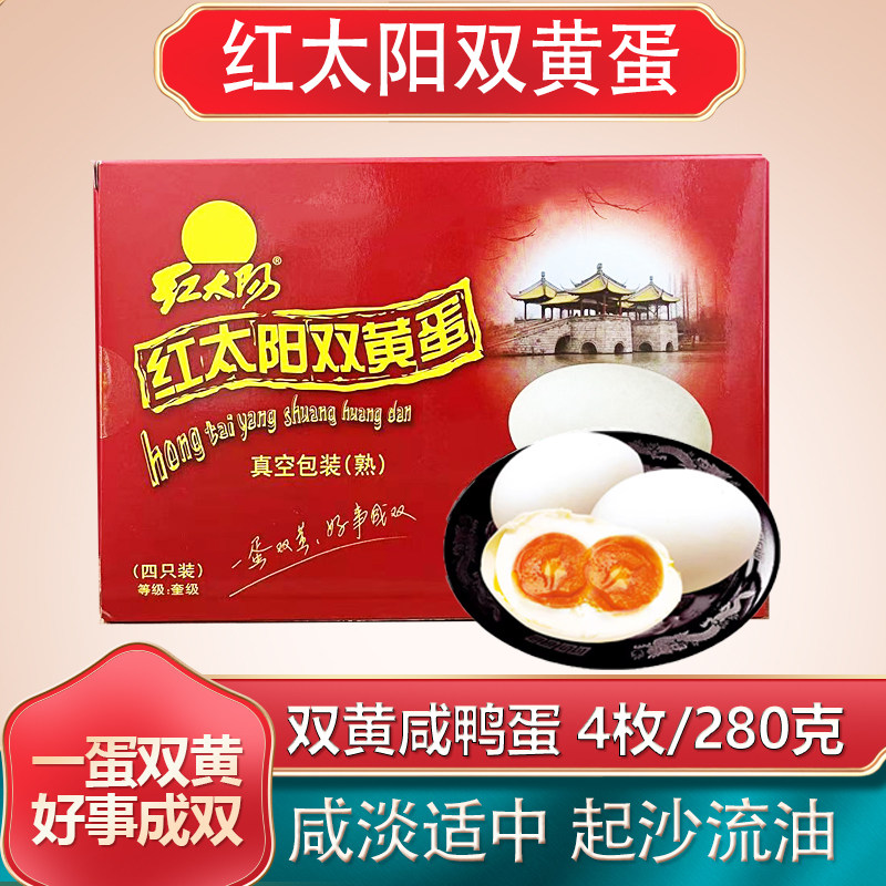 📚 高邮红太阳双黄蛋扬州特产咸鸭蛋红心流油塑盒装端午礼品福利