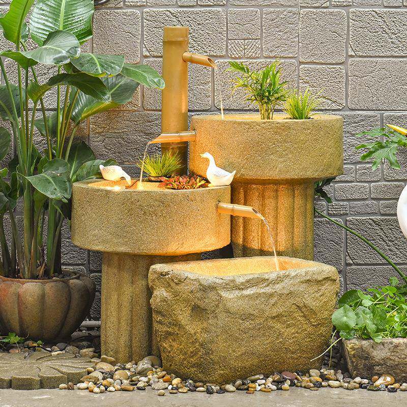 📚 观聚宝盆日式竹子景招财流水件摆别墅庭院装饰阳循环水台AJK造景