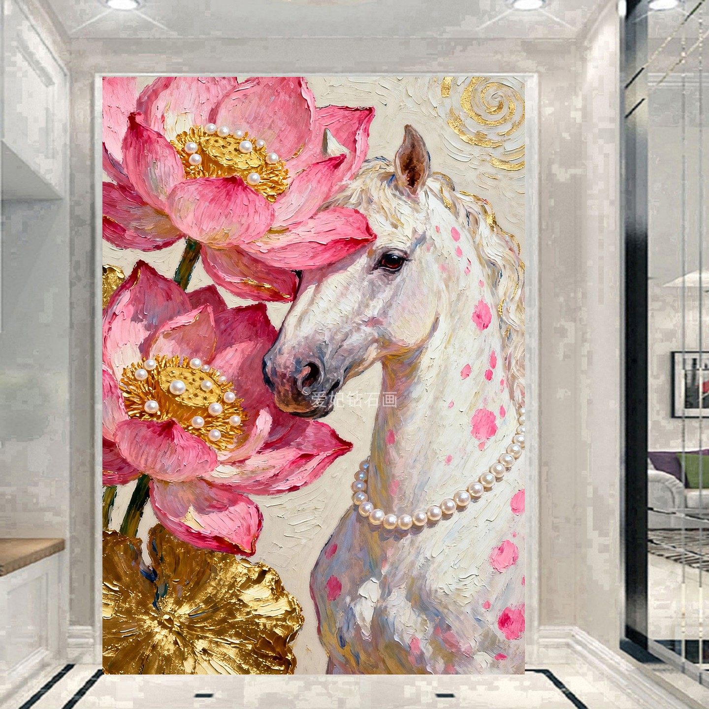 荷花珍珠钻钻白马树脂