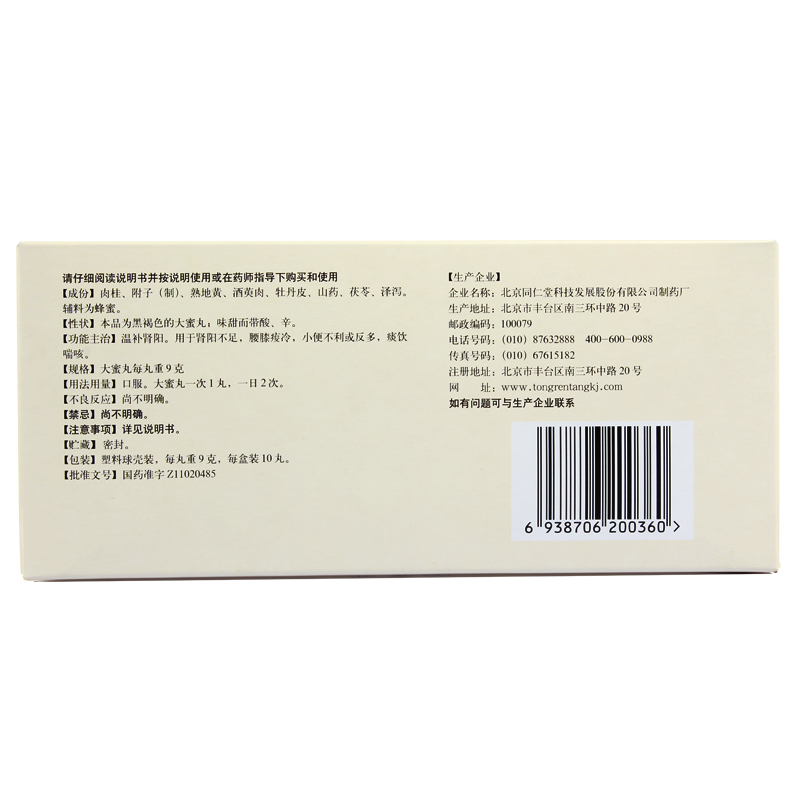 📚 同仁堂桂附地黄丸八味中丸益肾大蜜丸肾阳虚阴阳次数夜尿多尿急