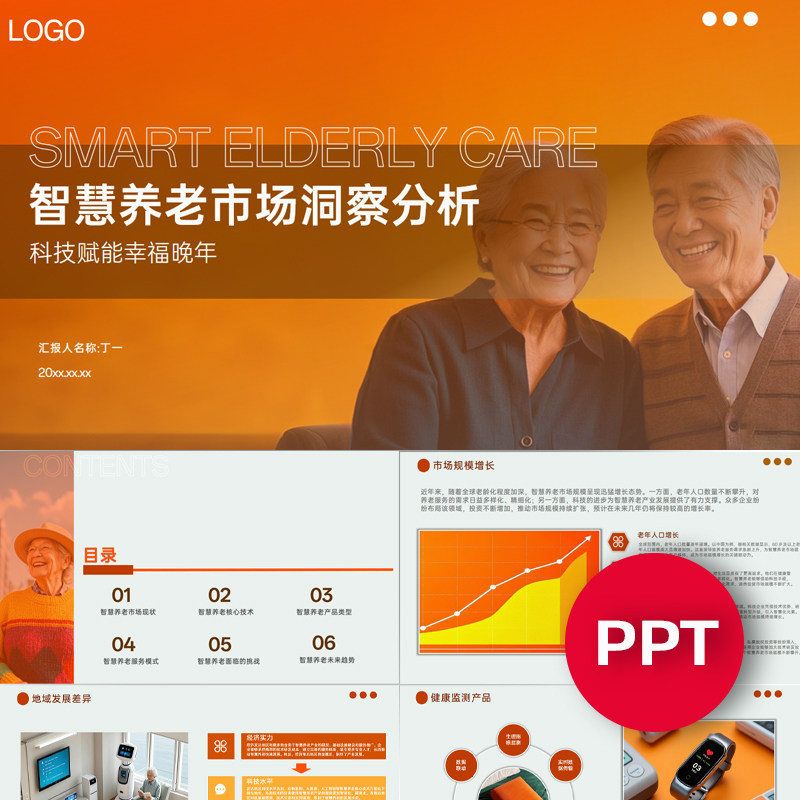 📚 智慧养老市场洞察分析ppt模板素材银发经济养老高级感ppt模板