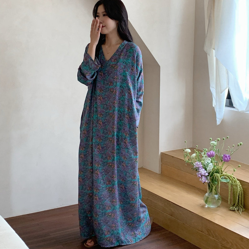 📚 睡裙女春夏季法式度假沙滩长裙拖地裙V领口袋新中式脚踝绵绸裙薄
