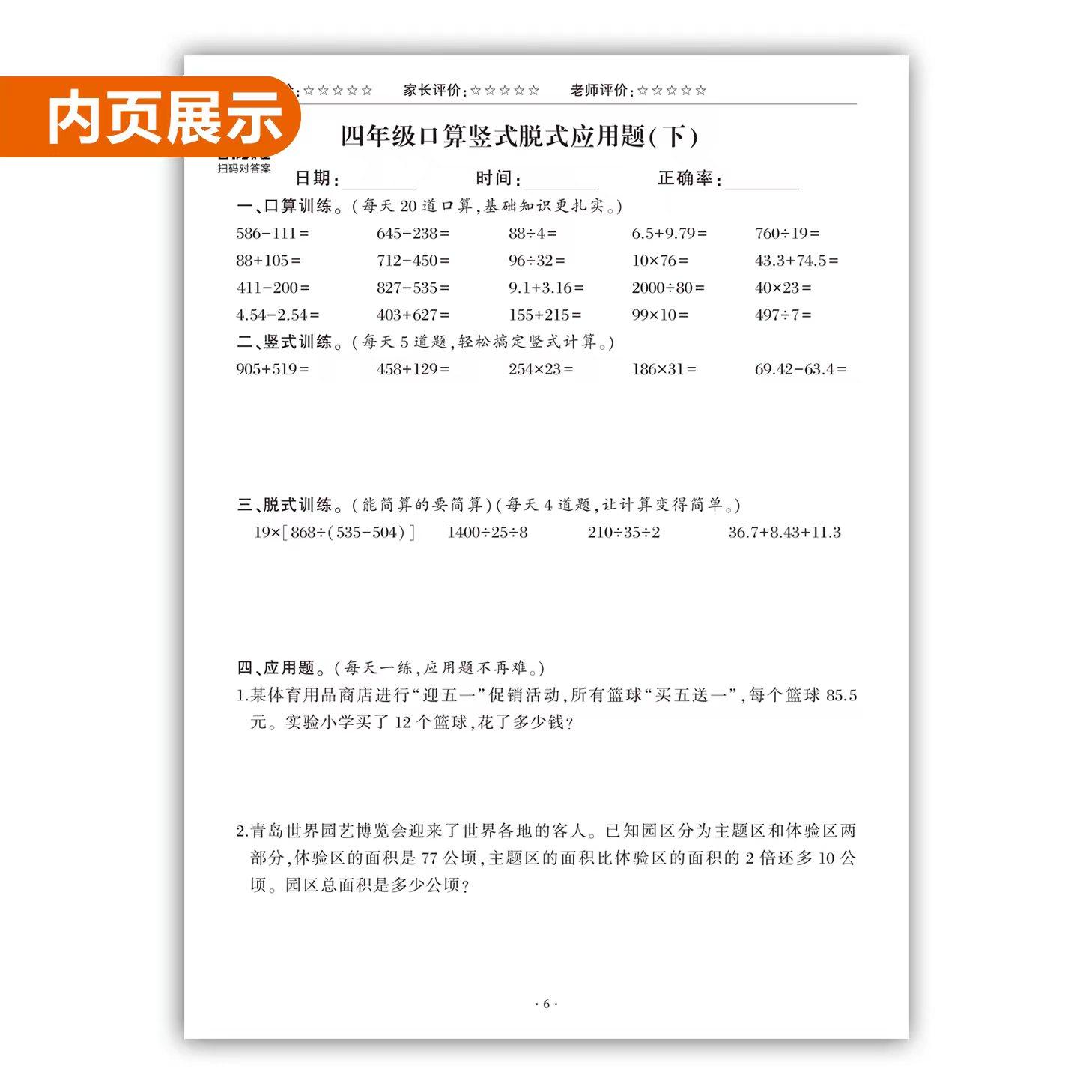 📚 一二三四五六年级数学上下册期中期末考前复习资料加减乘除混合运算应用题考前刷题提分宝典口算竖式脱式应用题专项练习暑假作业本