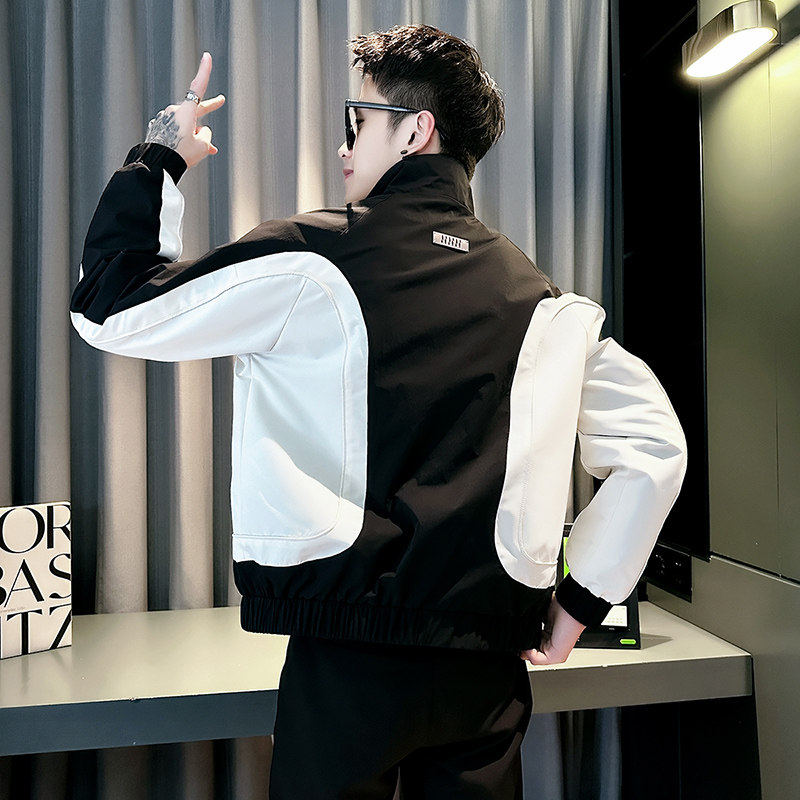 📚 小个子S小码男士潮牌工装外套短款休闲拼接上衣XS码春秋季夹克衫