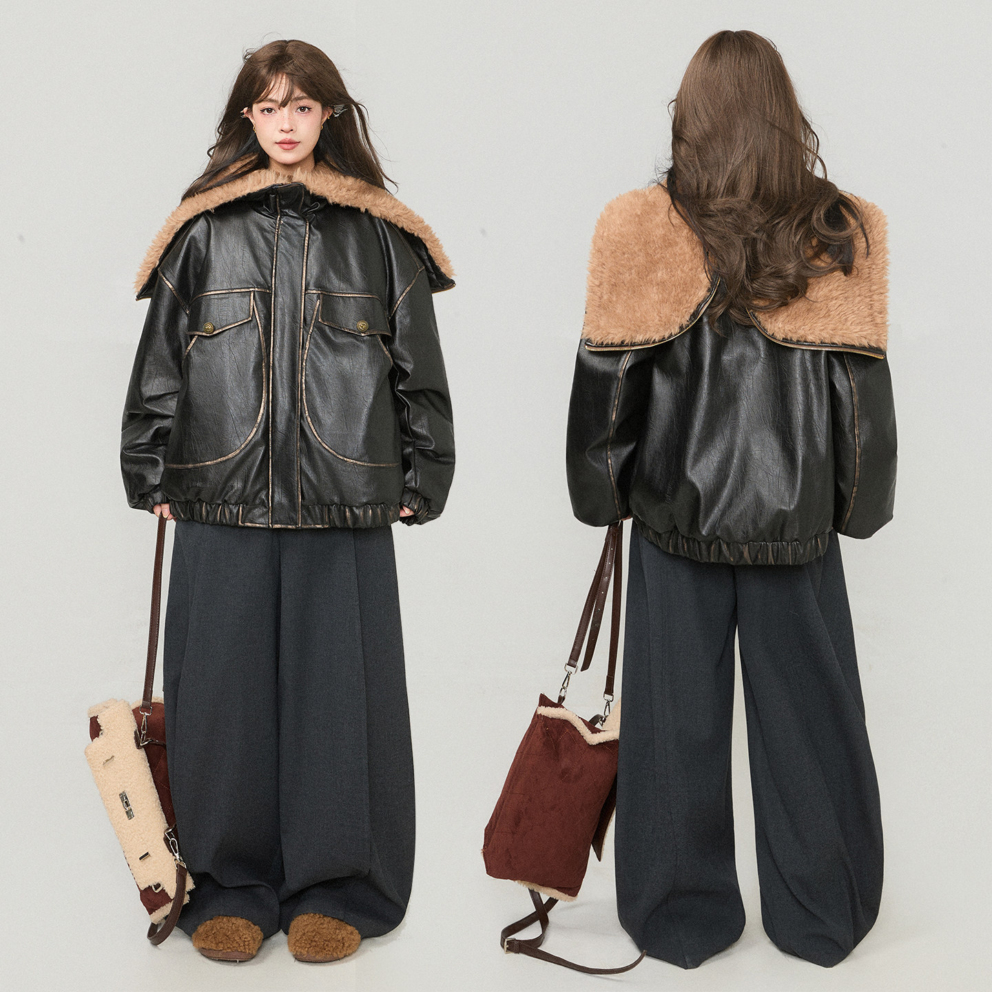 👜说到细节,这款外套的大毛领设计更是让人爱不释手。毛领柔软舒适,保暖效果一流。穿上它,仿佛被冬日的暖阳包围,超级温暖。