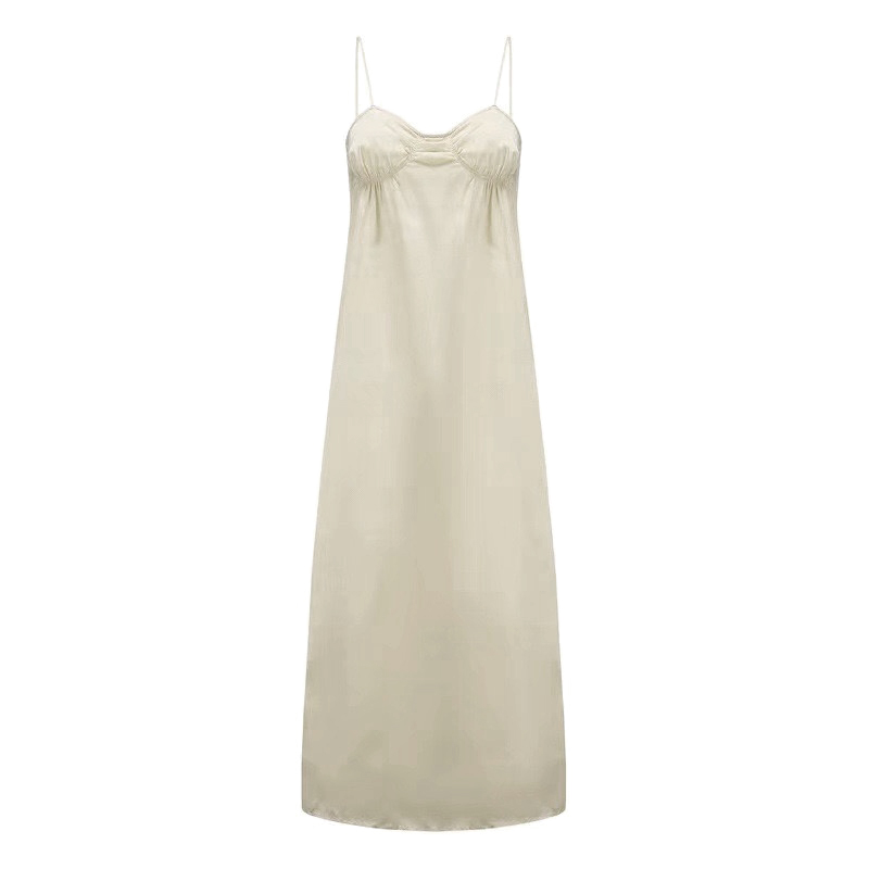 📚 古力娜扎同款米白色缎面褶皱吊带连衣裙显瘦气质长裙子女2024春夏