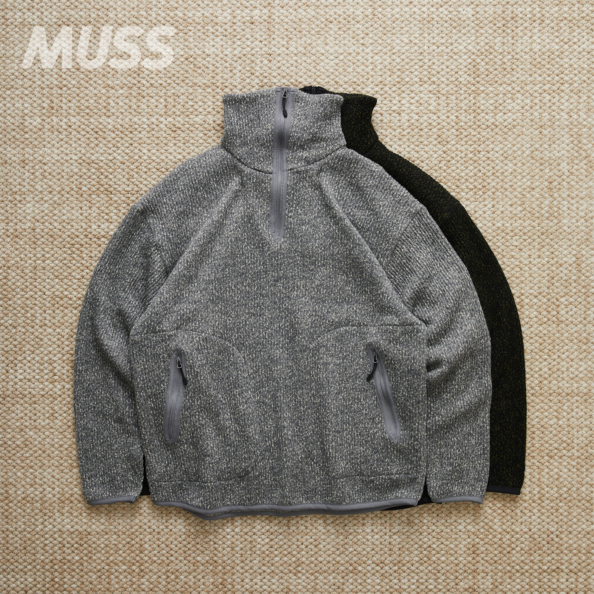 📚 现货 WHITE MOUNTAINEERING MELANGE 白山立领坑条半拉链卫衣25AW
