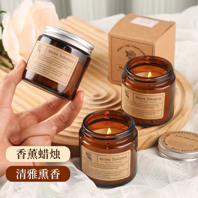 📚 点燃式香薰蜡烛棕色瓶小罐花香薰家用小众室内淡茶香安神助眠香氛
