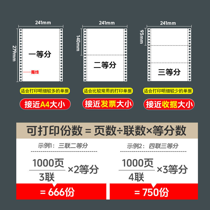 📚 针式打印纸电脑三联二等分打印纸二联三等分送货单四联五联发票清单纸241-3联2等分针式打印机专用纸出入库单