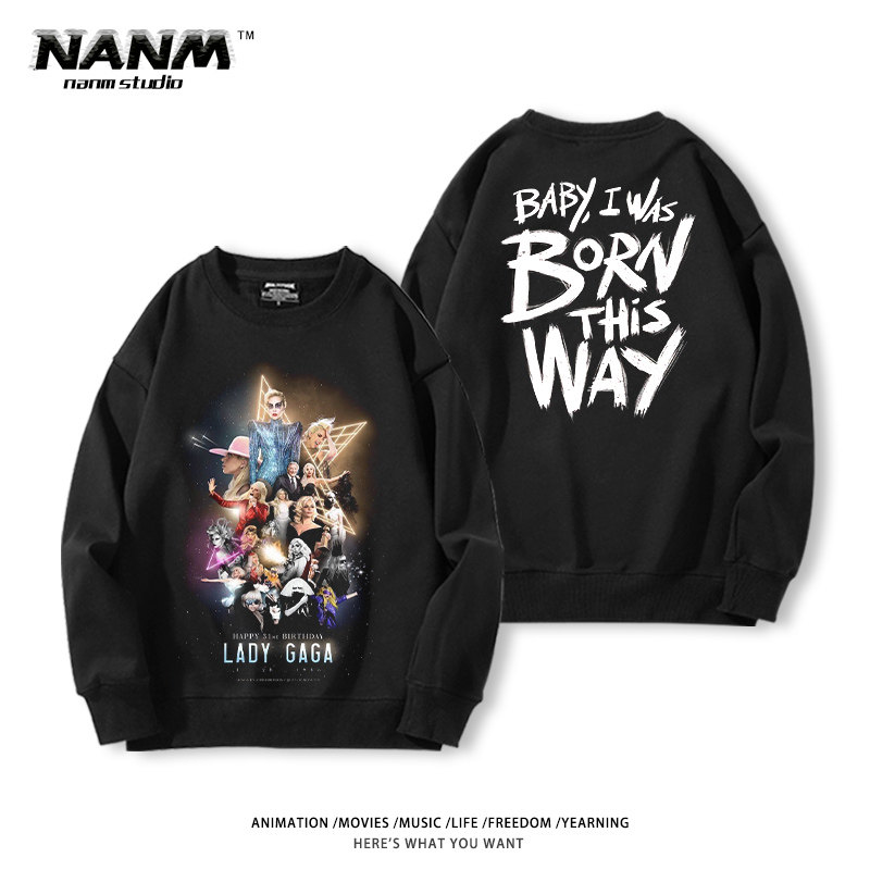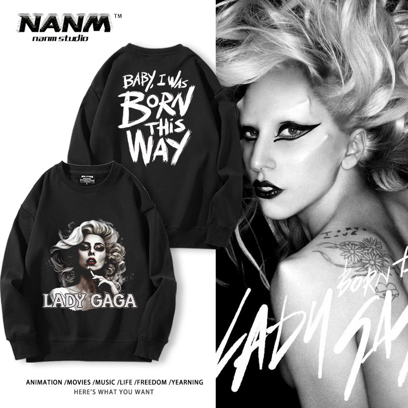 📚 美国歌手ladygaga圆领卫衣男女秋冬欧美风摇滚爵士潮流休闲外套