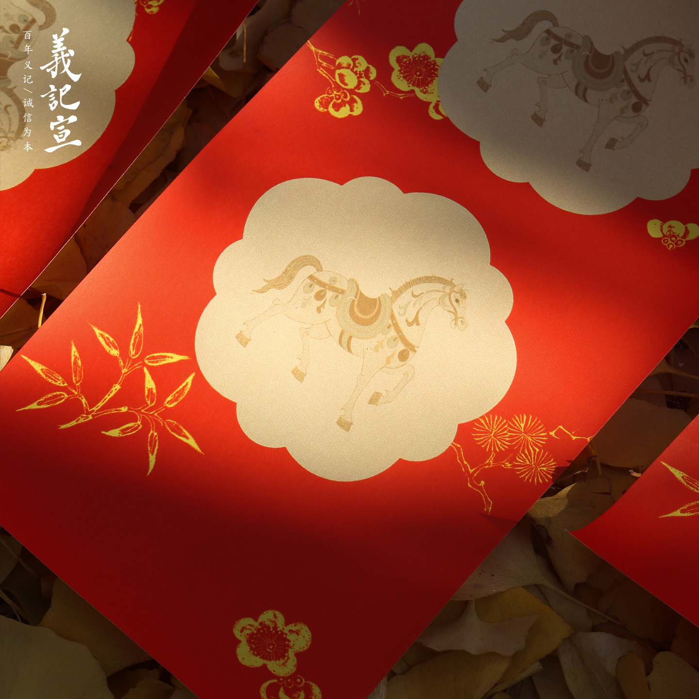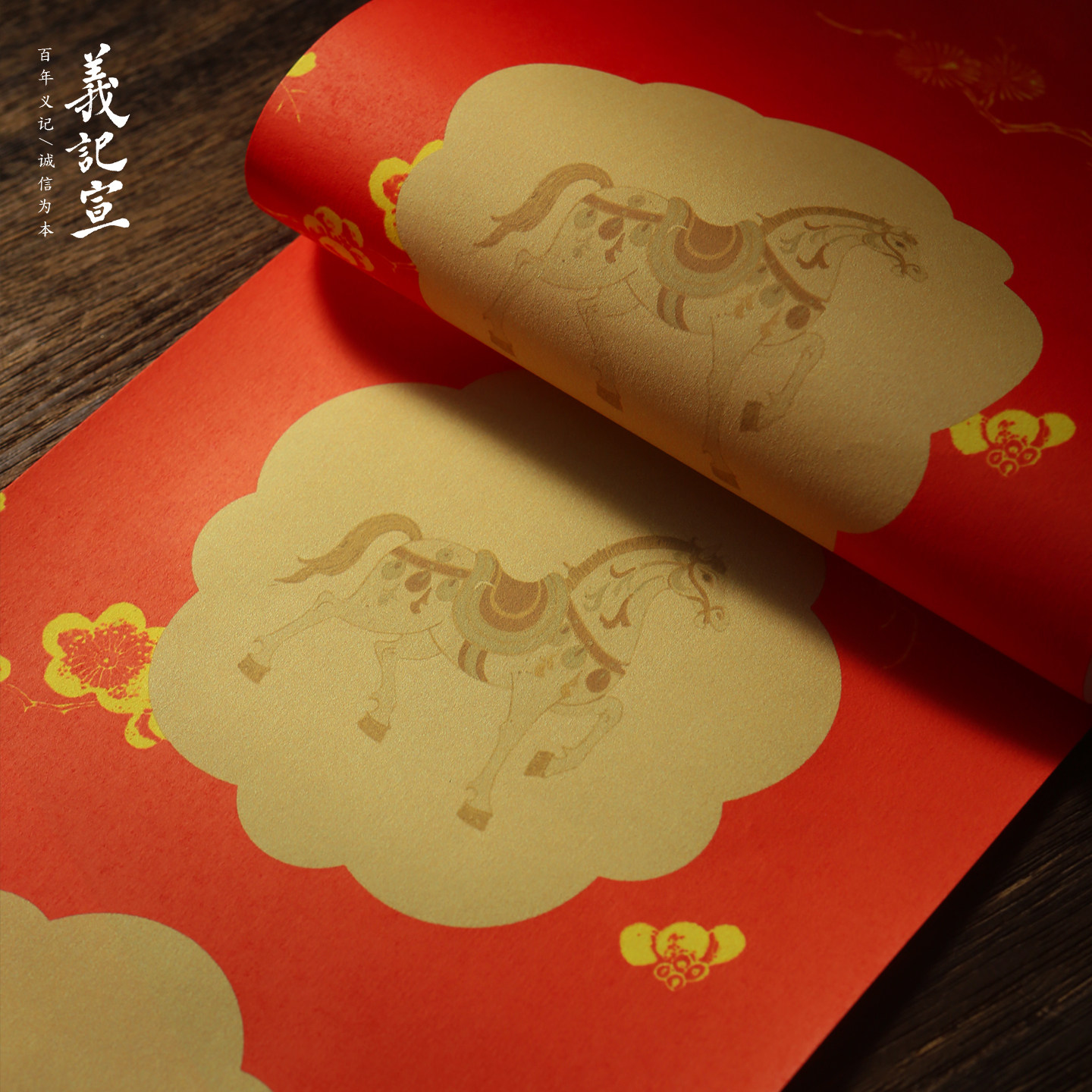 📚 【原创新品】义记宣瑞马对联纸2026马年创意春联纸空白手写加厚半生熟万年红福字斗方门贴红纸蜡染自写春联纸