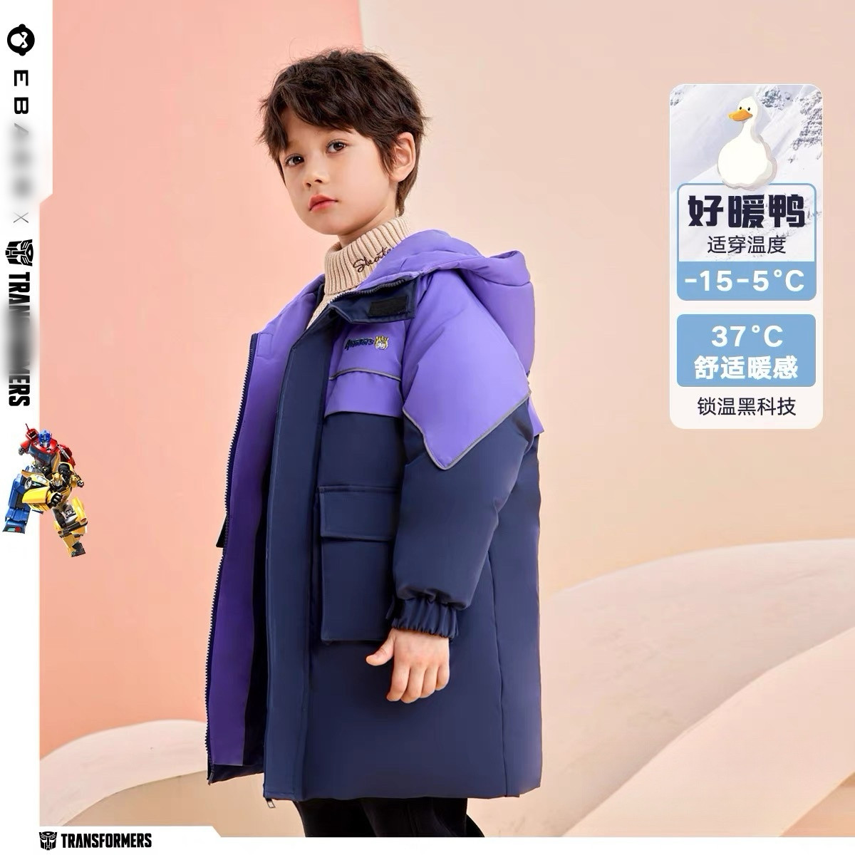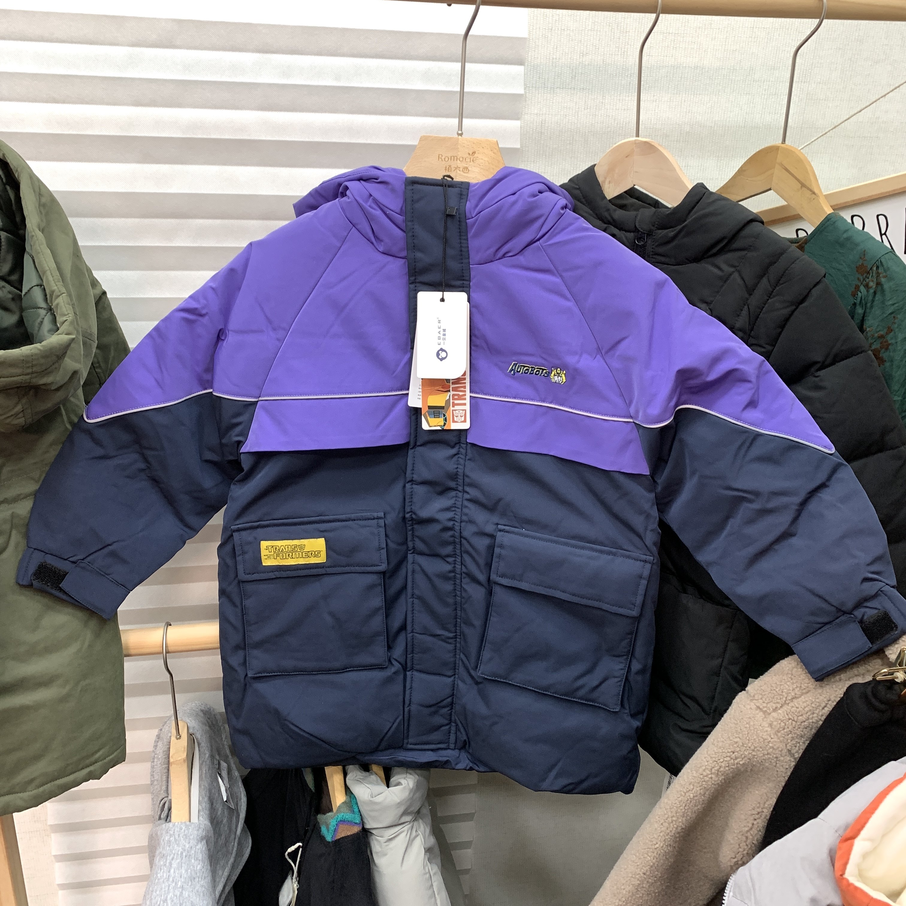 📚 EB专柜正品男童秋冬冲锋衣羽绒服儿童保暖冬装加厚连帽外套110码