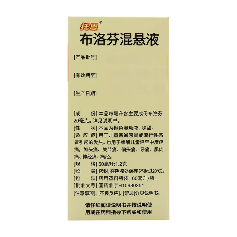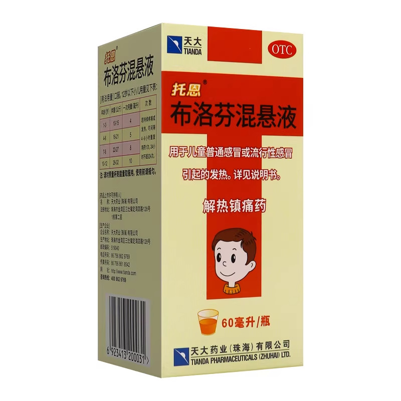📚 【天大·托恩】布洛芬混悬液 60ML*1瓶/盒中度疼痛感冒引起的发热
