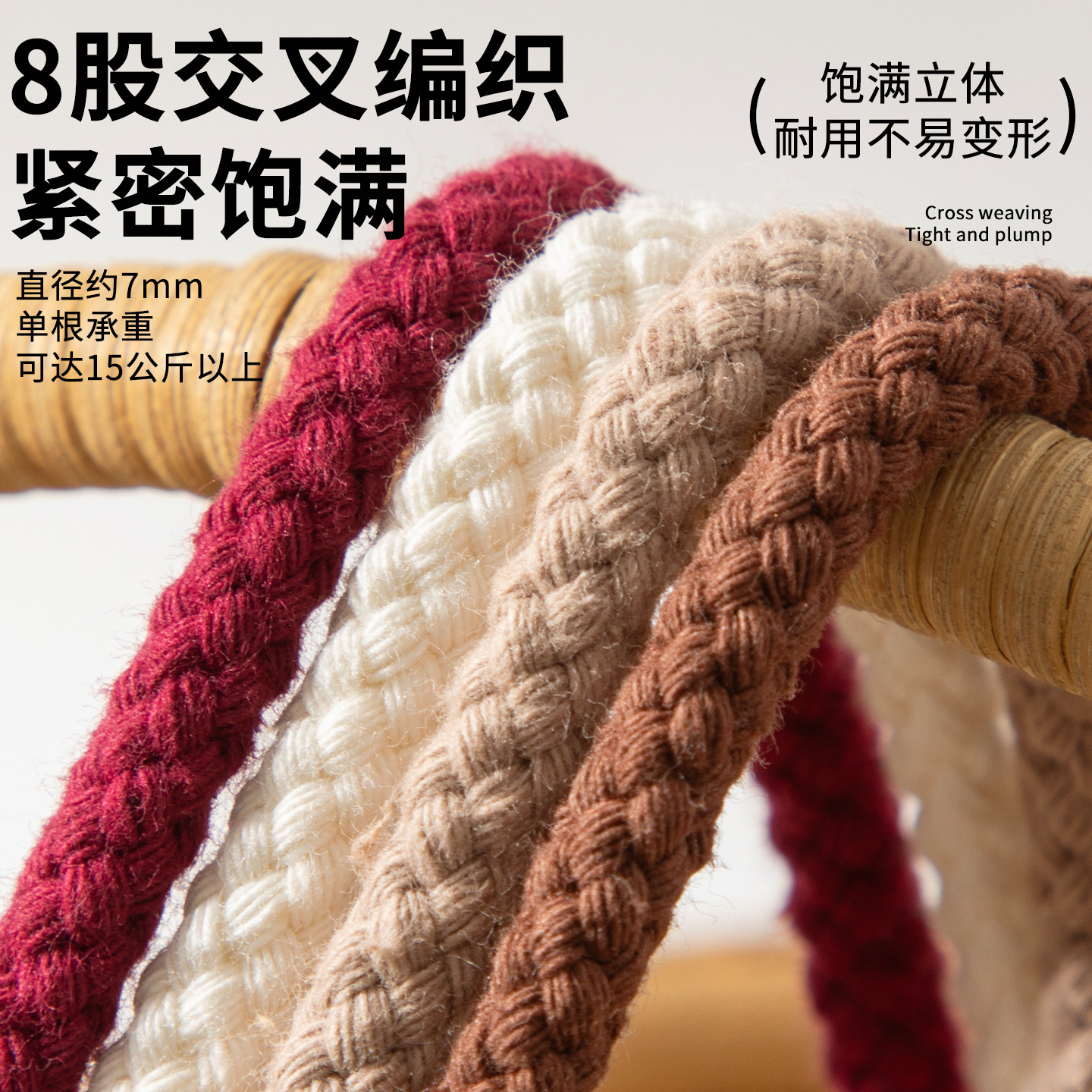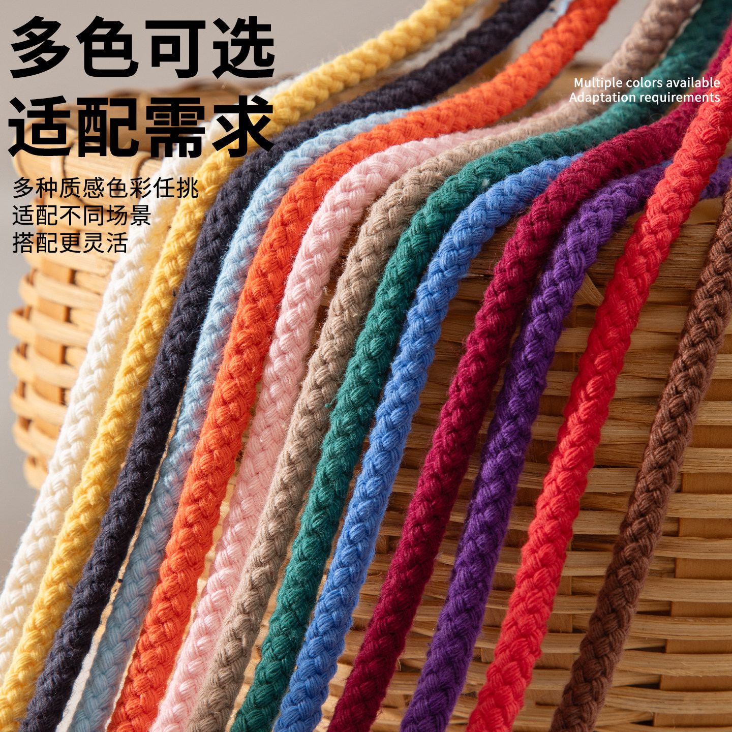 📚 八股彩色纯棉绳带子DIY手工编织口袋抽绳裤绳棉绳子束口袋绳帽绳