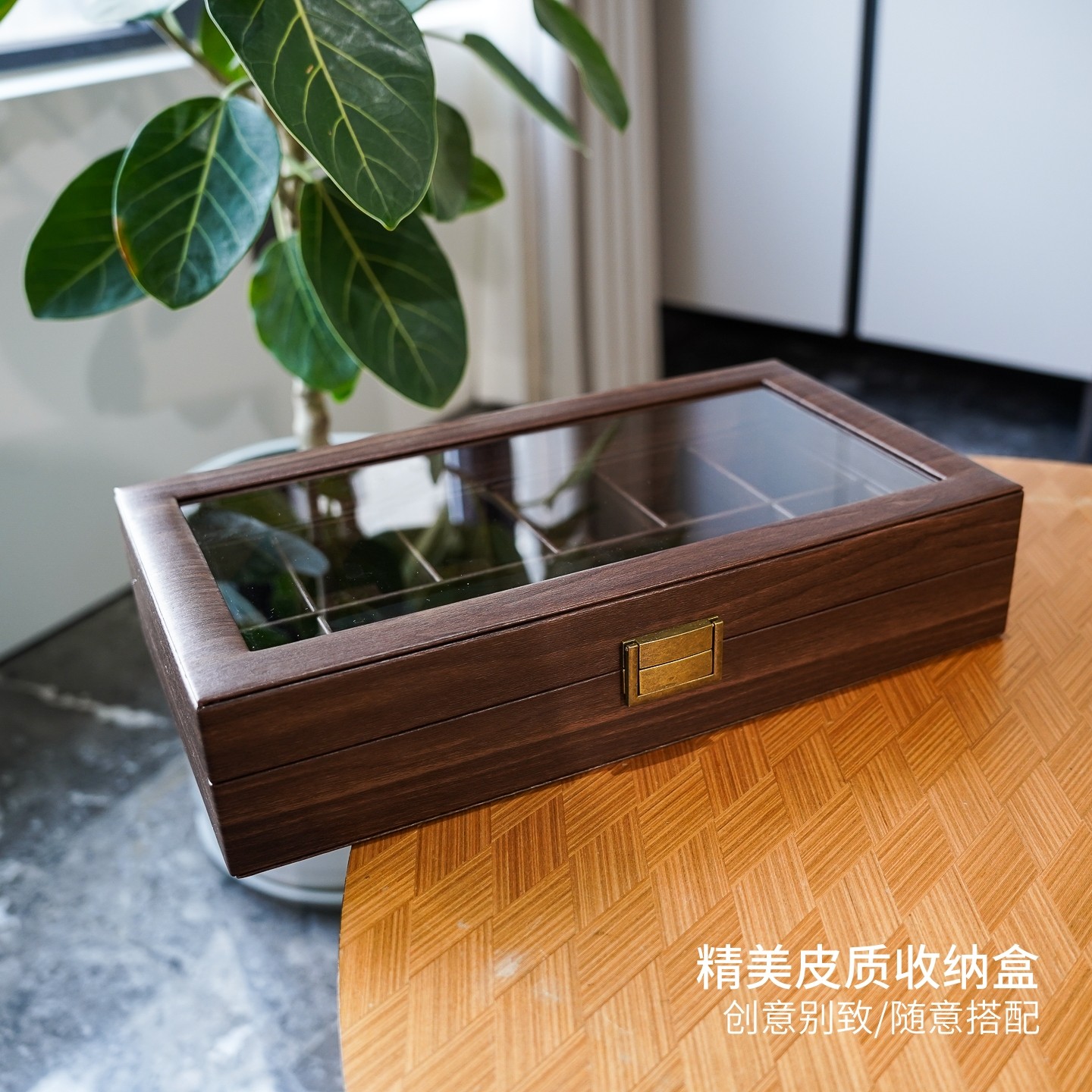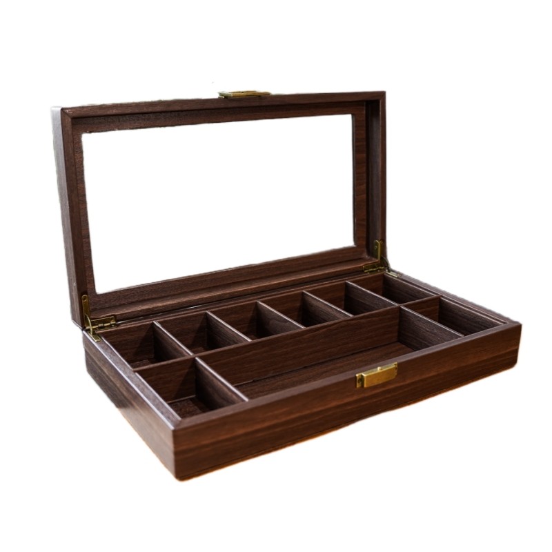 📚 首饰多功能收纳盒 树皮木纹纹皮革9格文玩佛珠手串核桃展示收藏箱
