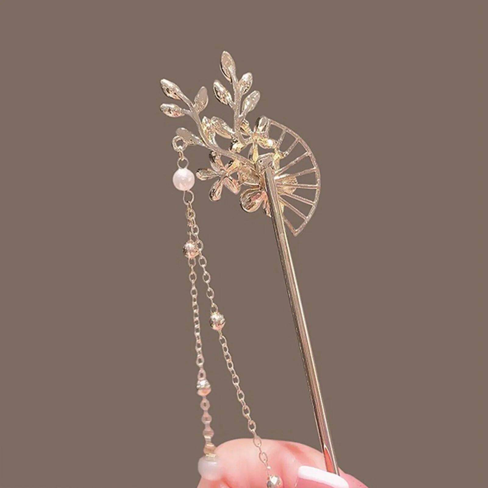 📚 Classic Hair Peach-blossomhair Chopsticks Gold Plated Prong