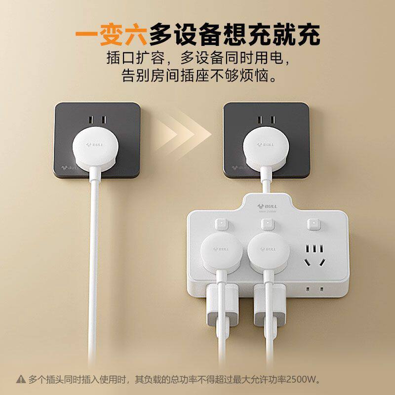 📚 公牛官方正品插座转换器插头一转三独立开关排插板扦座无线品字形