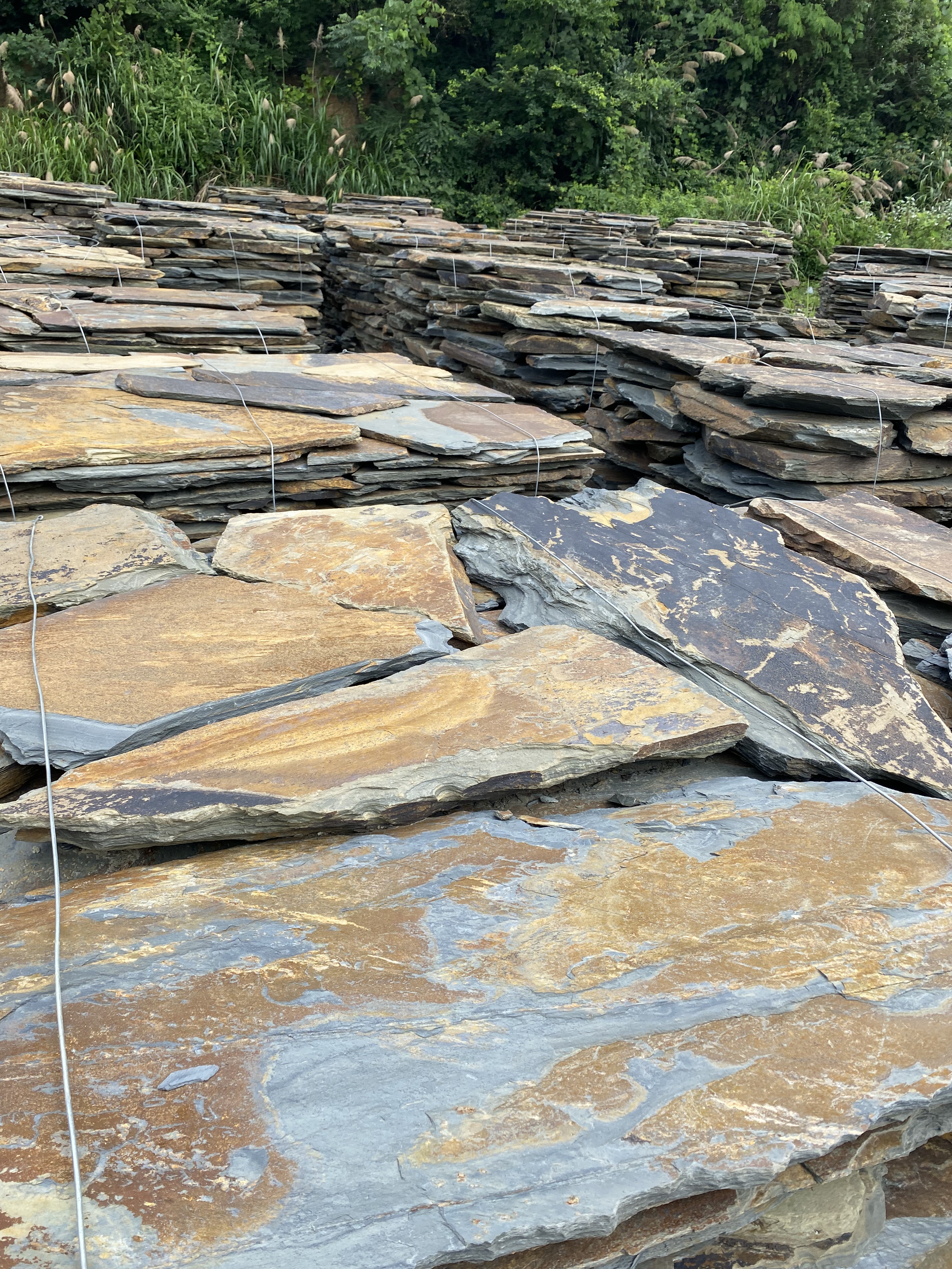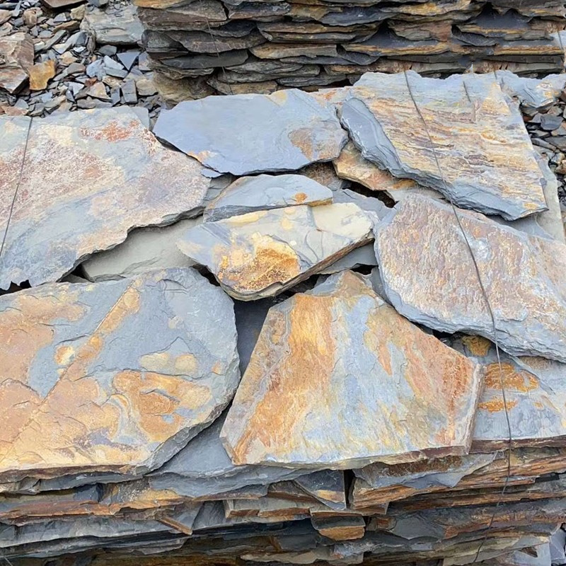 📚 天然青石板不规则锈色碎拼毛石铺路乱石板庭院花园复古地砖乱型板