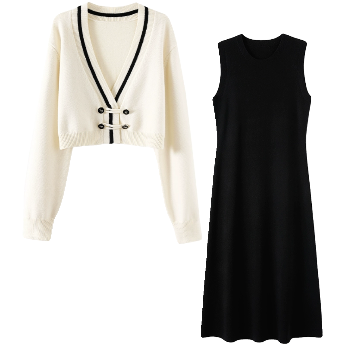 开衫国风连衣裙中式件套