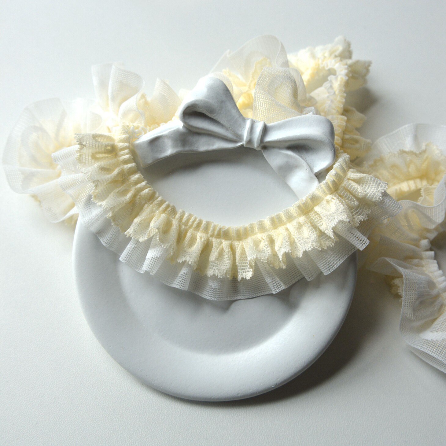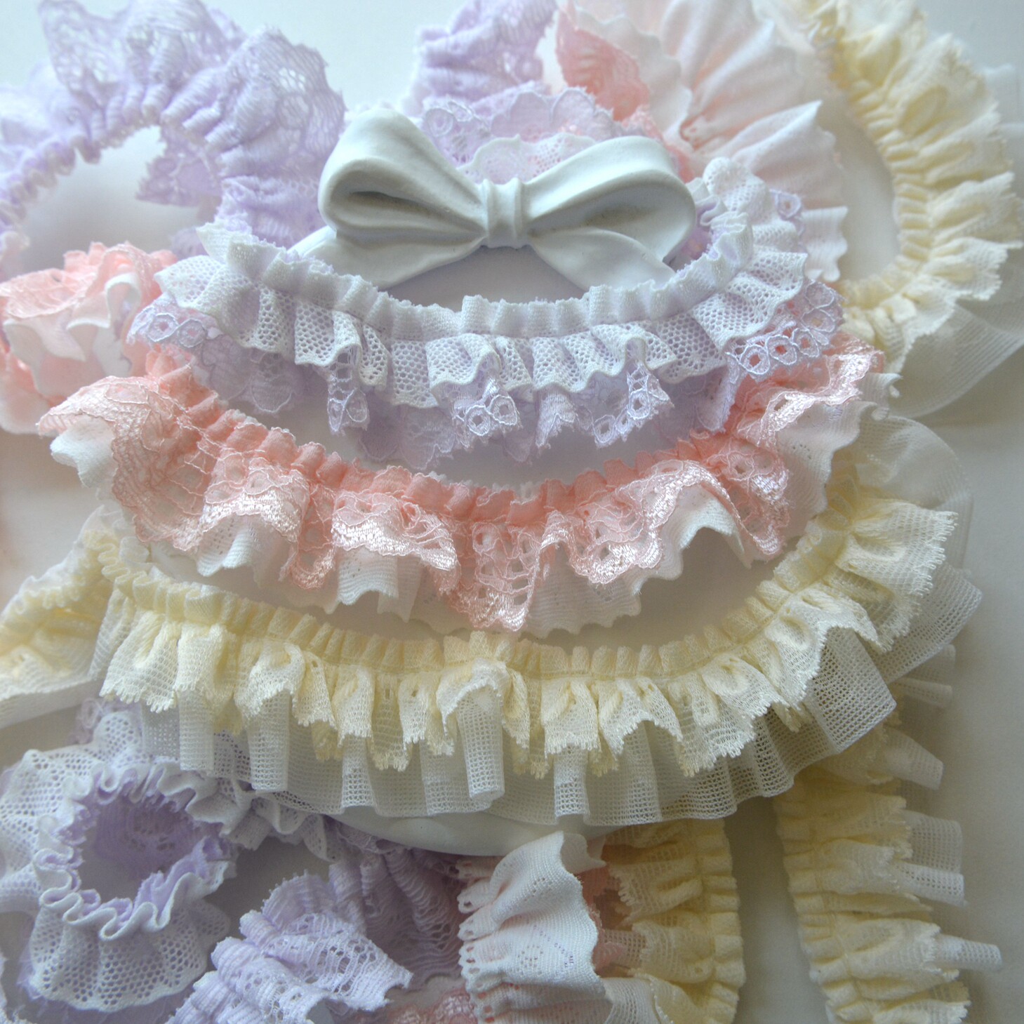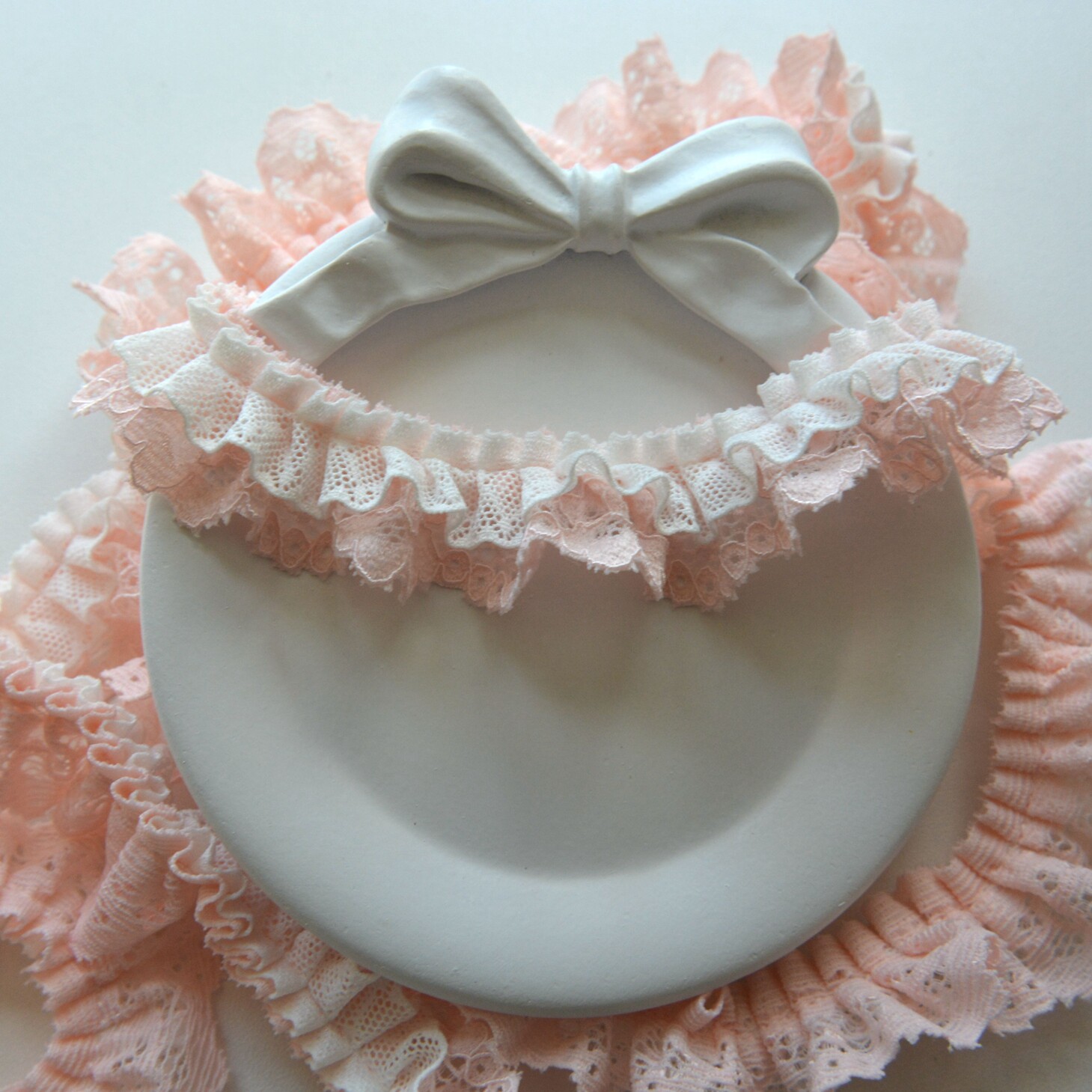 📚 2.5cm粉黄双层抽皱缩褶荷叶木耳蕾丝边娃衣大肠圈洋时装发饰抱枕