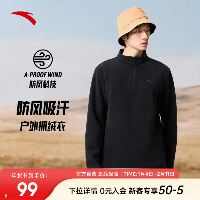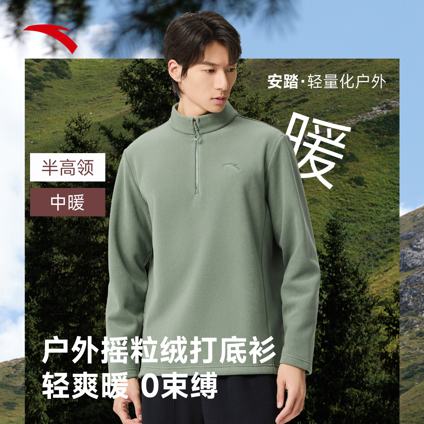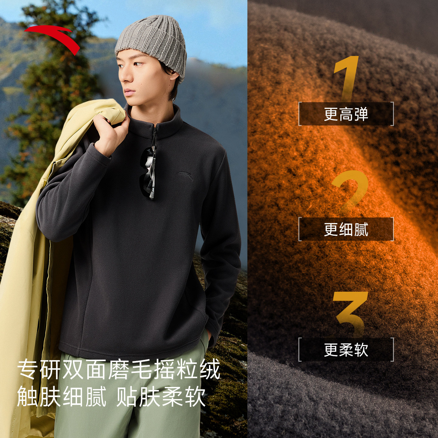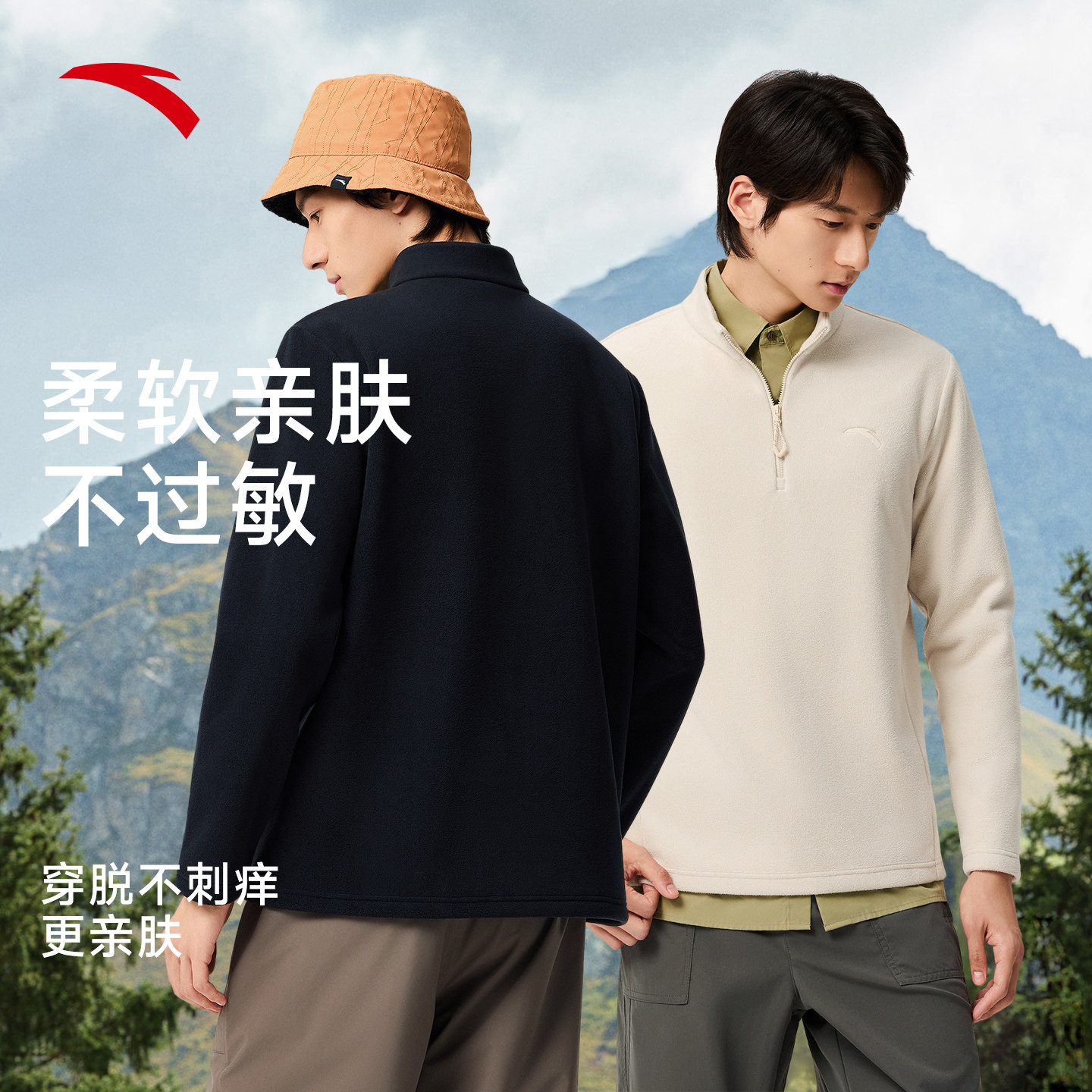 📚 安踏摇粒绒卫衣男款半拉链立领抓绒衣冬季新款长袖套头运动上衣男