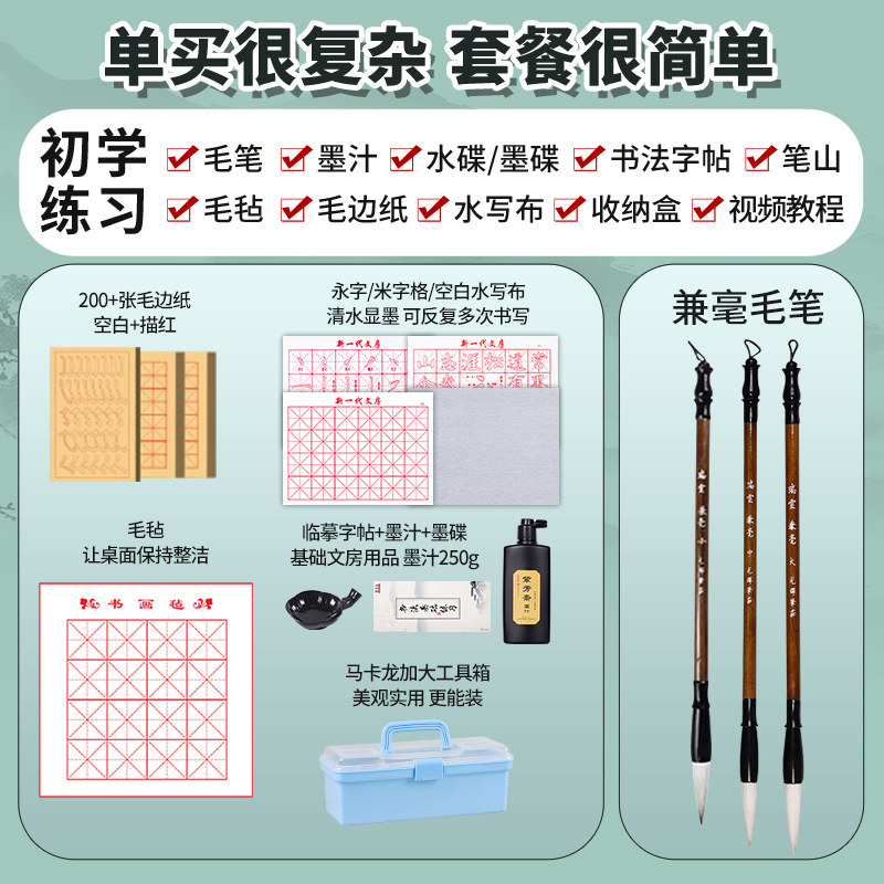 📚 紫芳斋毛笔初学书法套装初学者入门专用兼毫儿童三年级学生水写布笔墨纸砚练字全套成人专业文房四宝收纳工具
