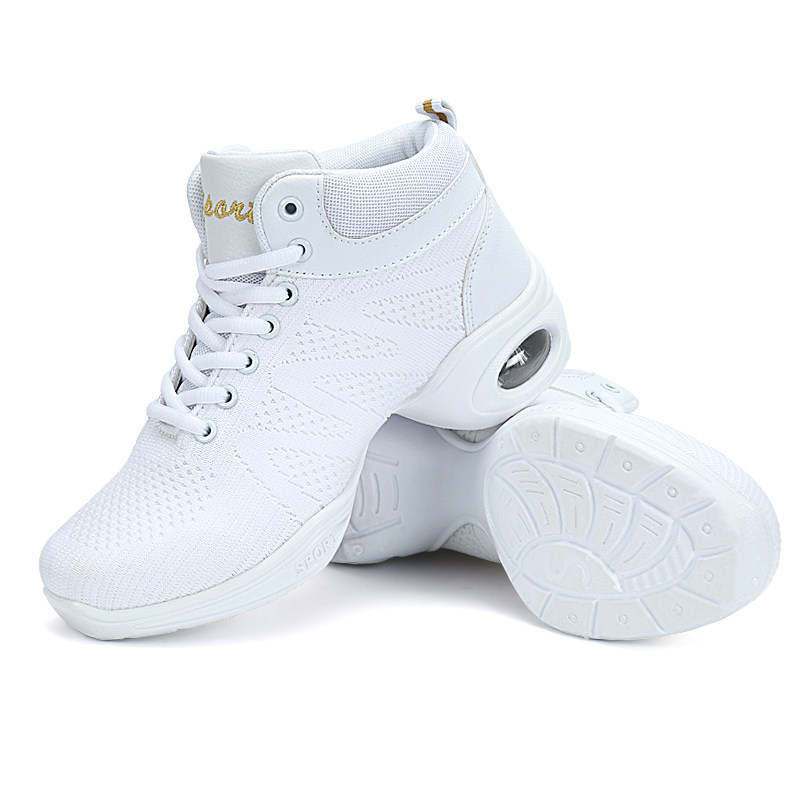 📚 白色广场舞鞋高帮四季网面透气爵士舞鞋健身鞋成人水兵跳舞鞋软底