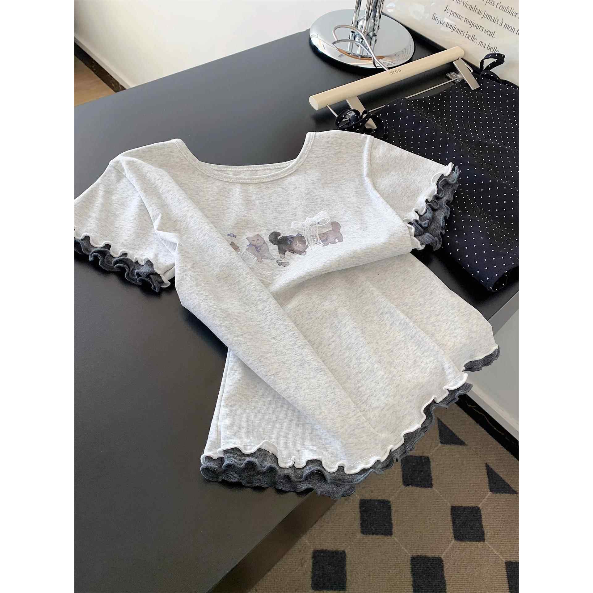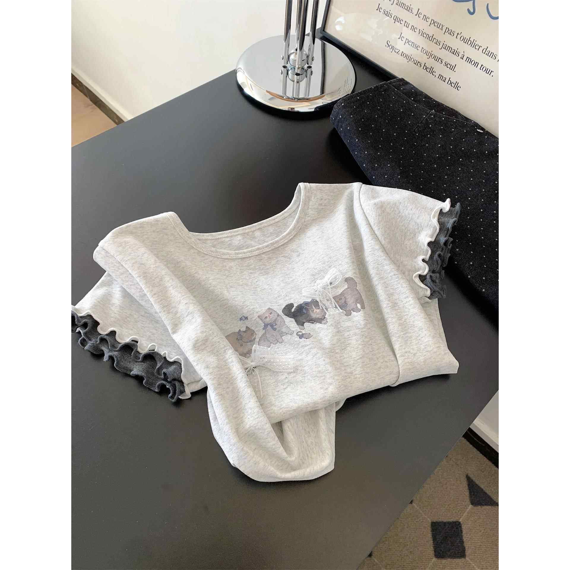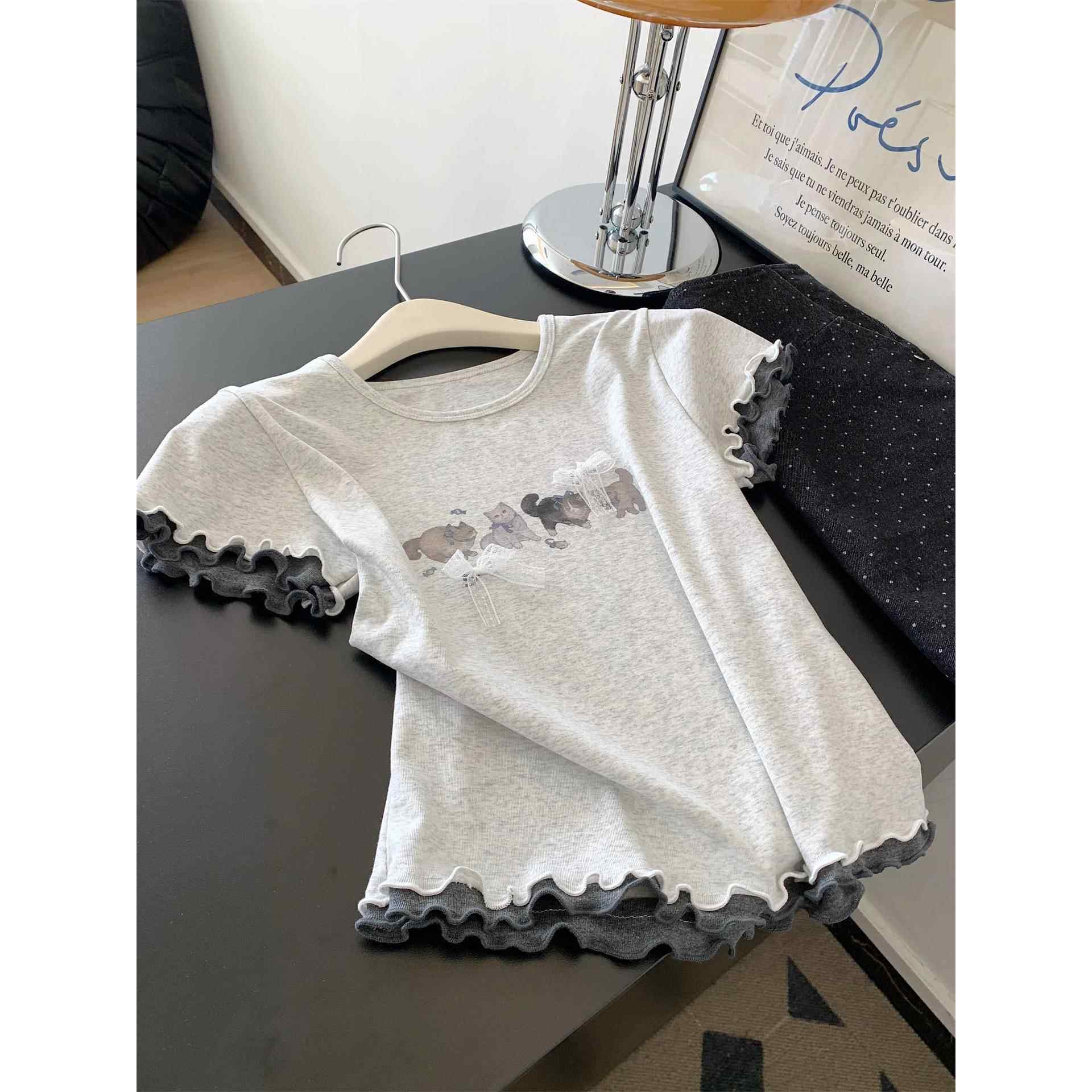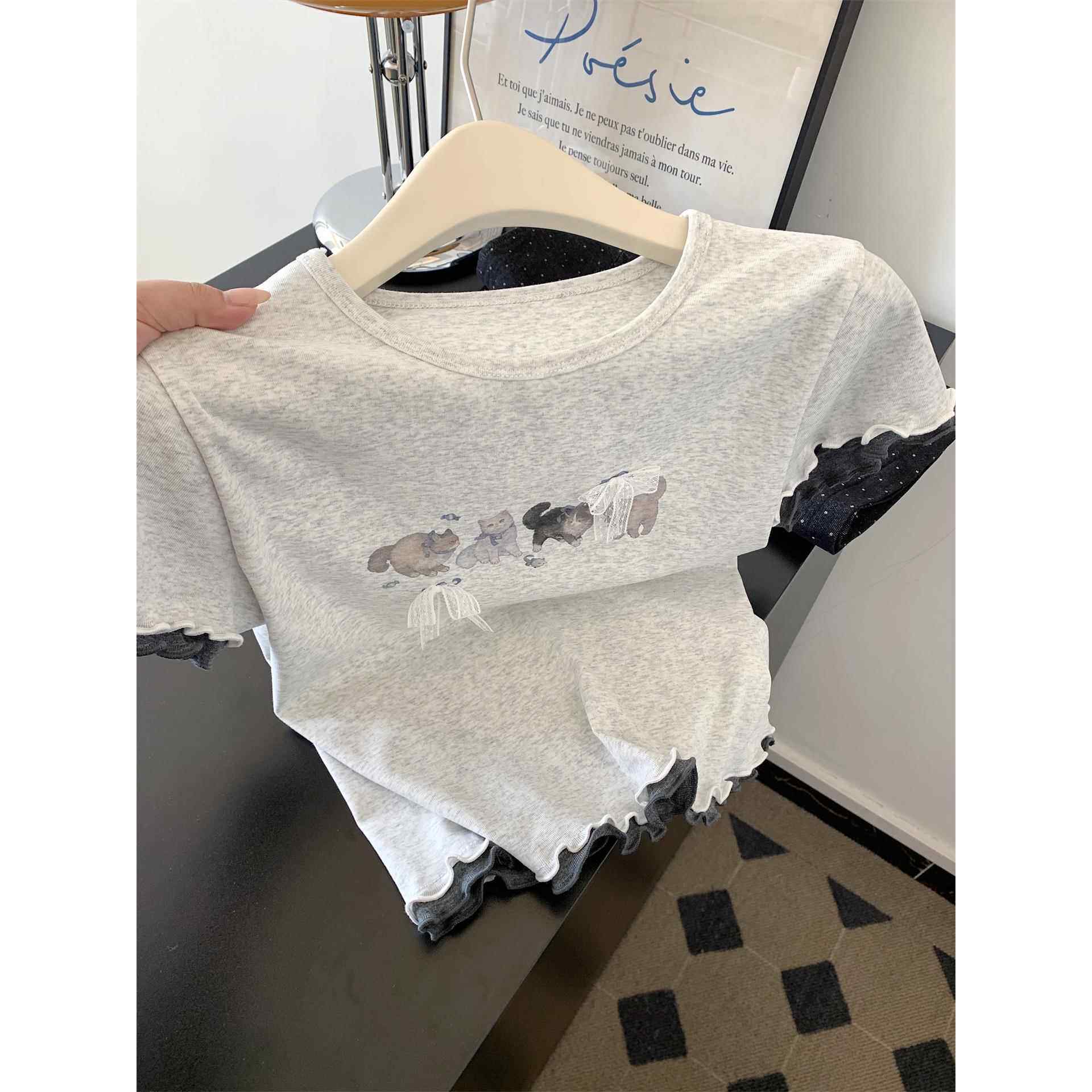 📚 夏季真蕾丝利基短袖t恤的妇女夏季苗条韩国印花棉半袖上衣0413d