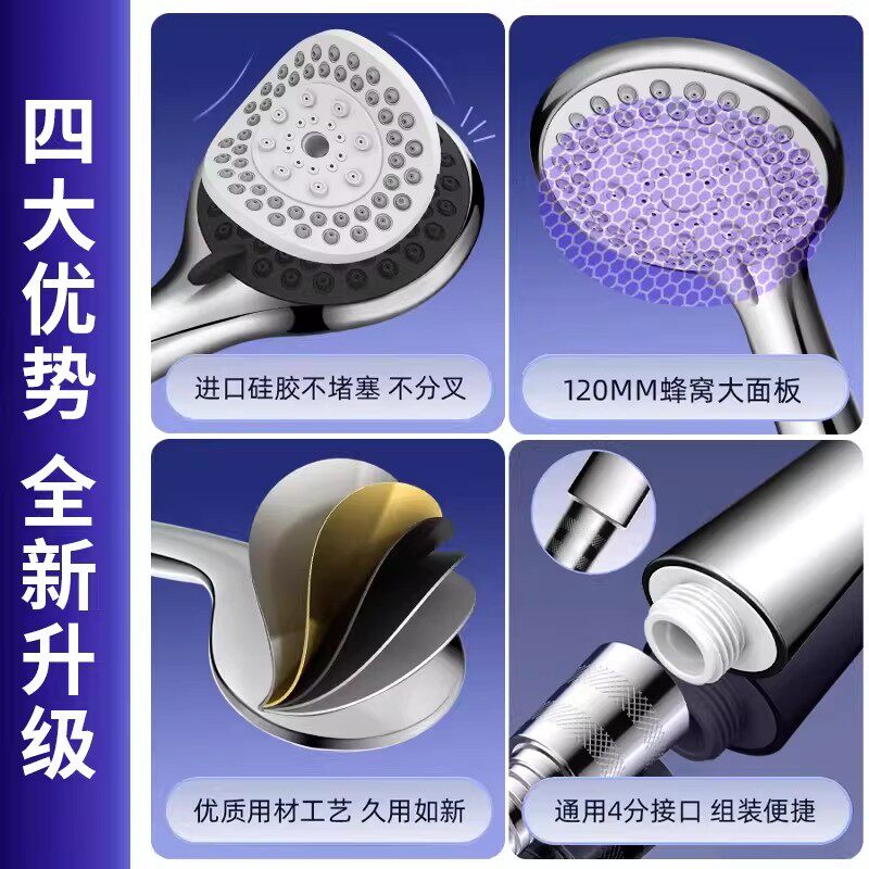 📚 粗孔老式大水量花洒喷头家用太阳能浴霸洗澡不增压防堵淋浴头套装