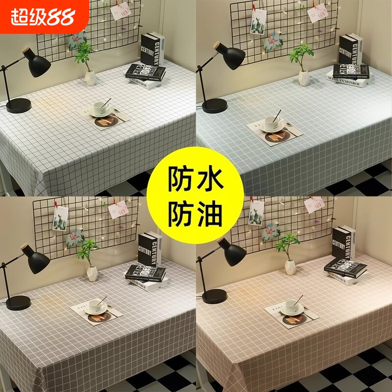 📚 桌布防水防油免洗茶几桌垫长方形餐桌布pvc塑料ins书桌格子桌子