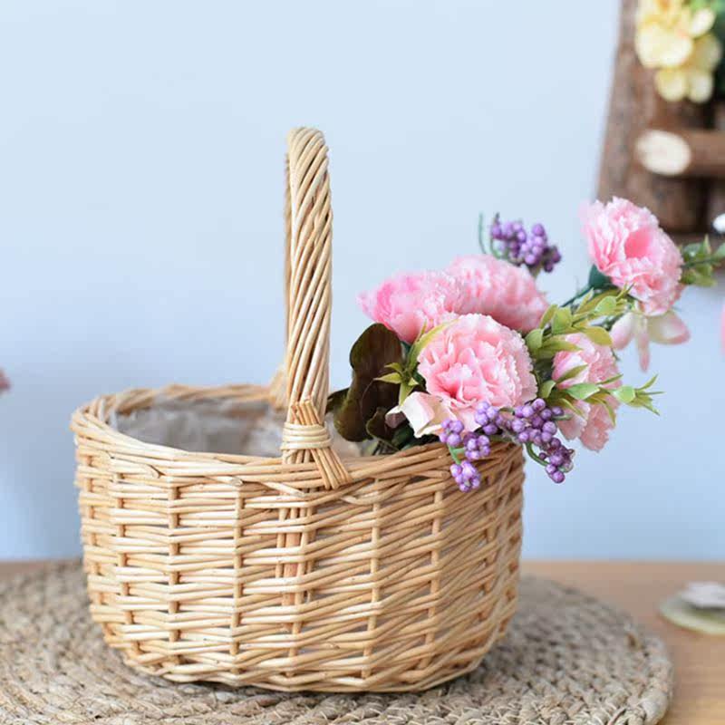 📚 Flower Basket Wicker Handheld Basket Flower Arrangement Gree