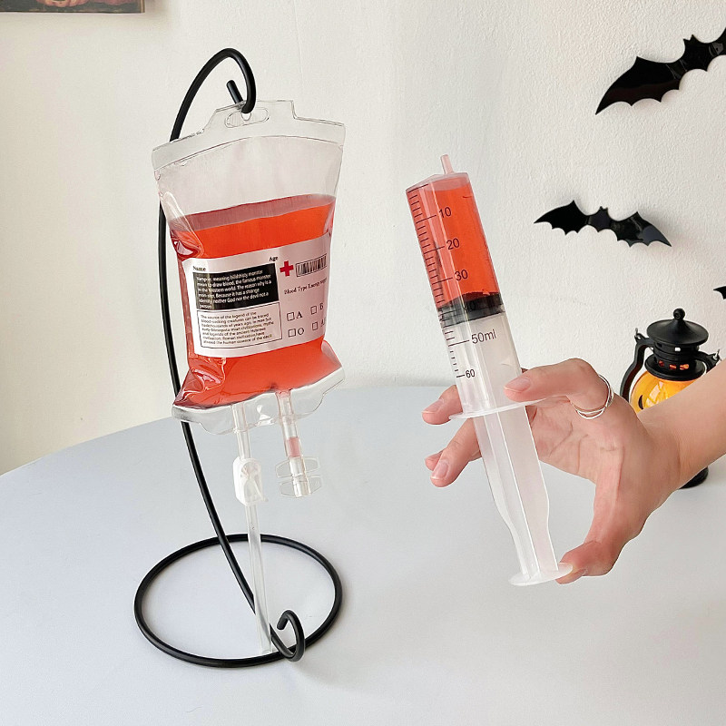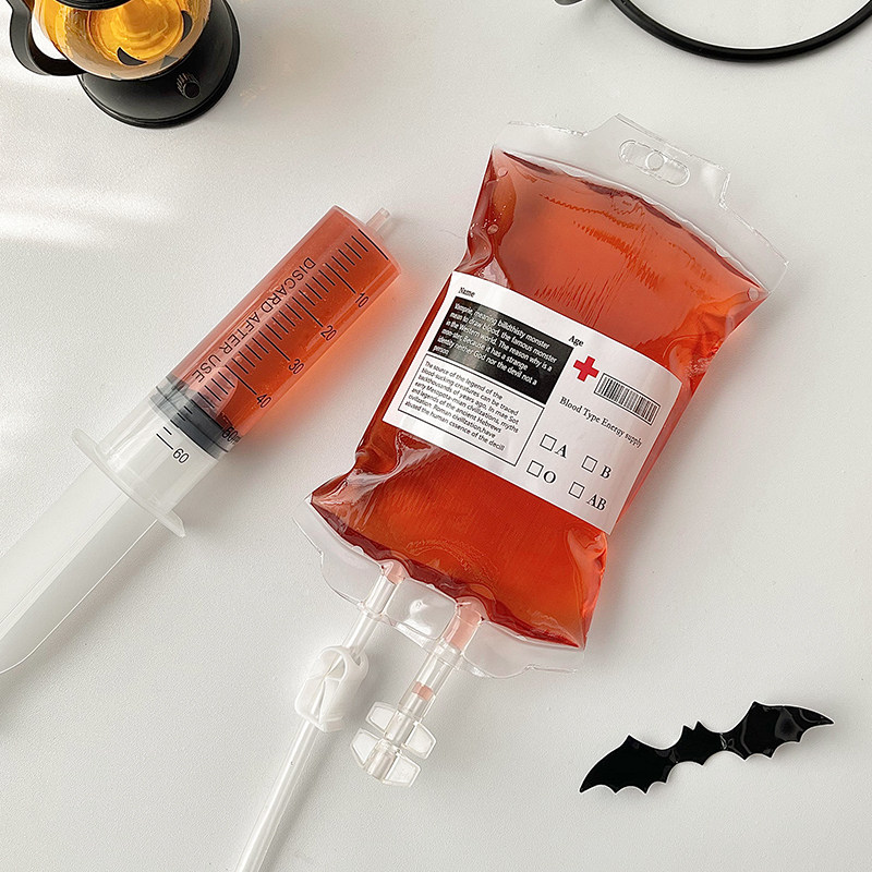 📚 血袋饮料万圣节创意搞怪装饰吊瓶输液果汁袋吸血鬼血浆袋果酱袋