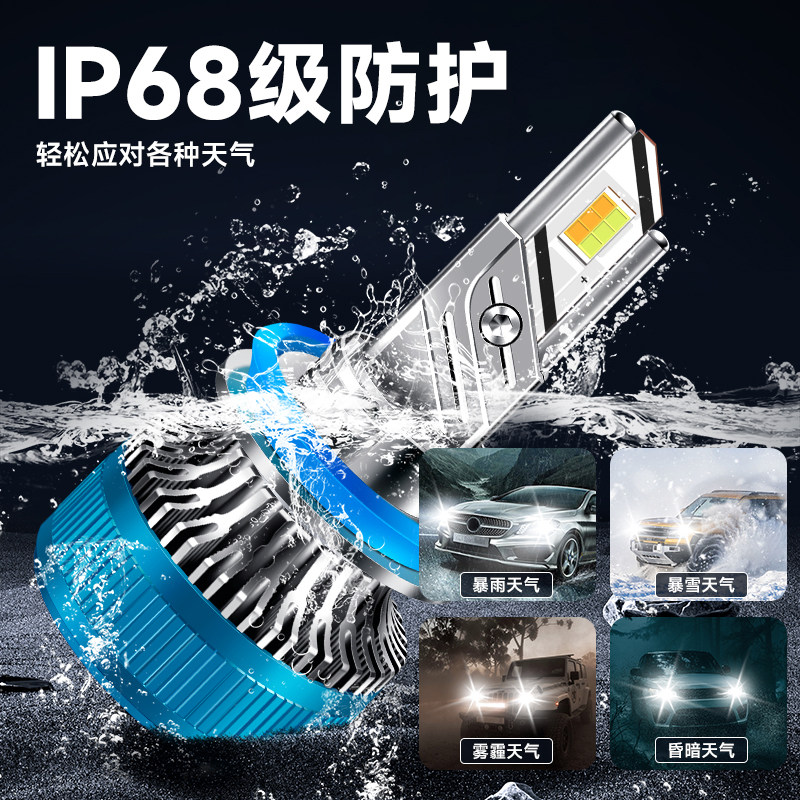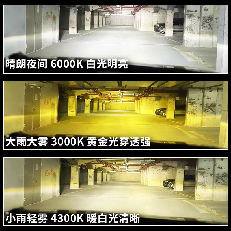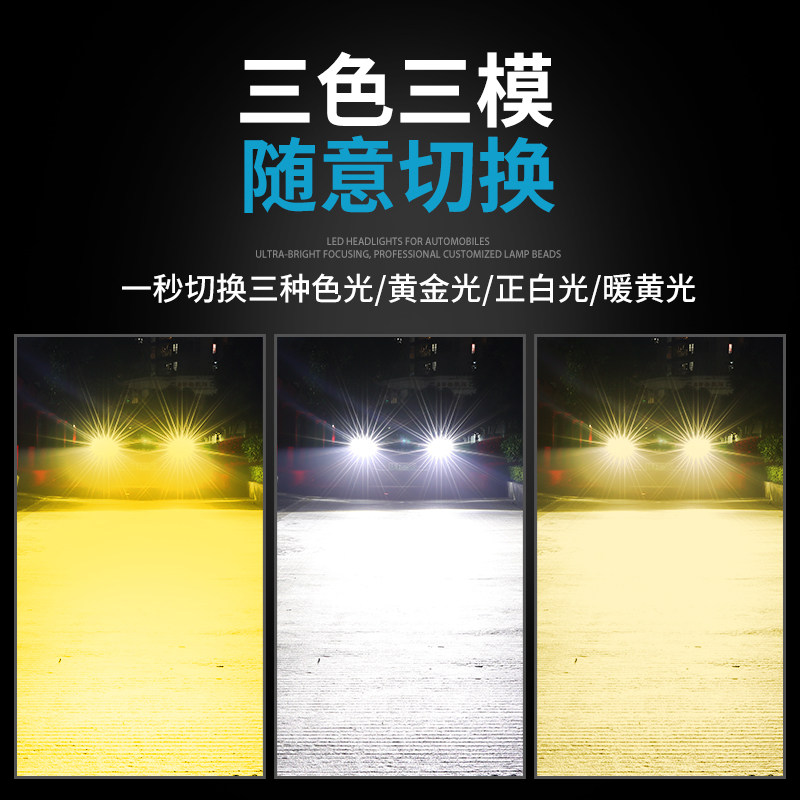 📚 三色汽车LED激光大灯雾灯9005远近光一体H4H7改装超亮货车灯泡H11
