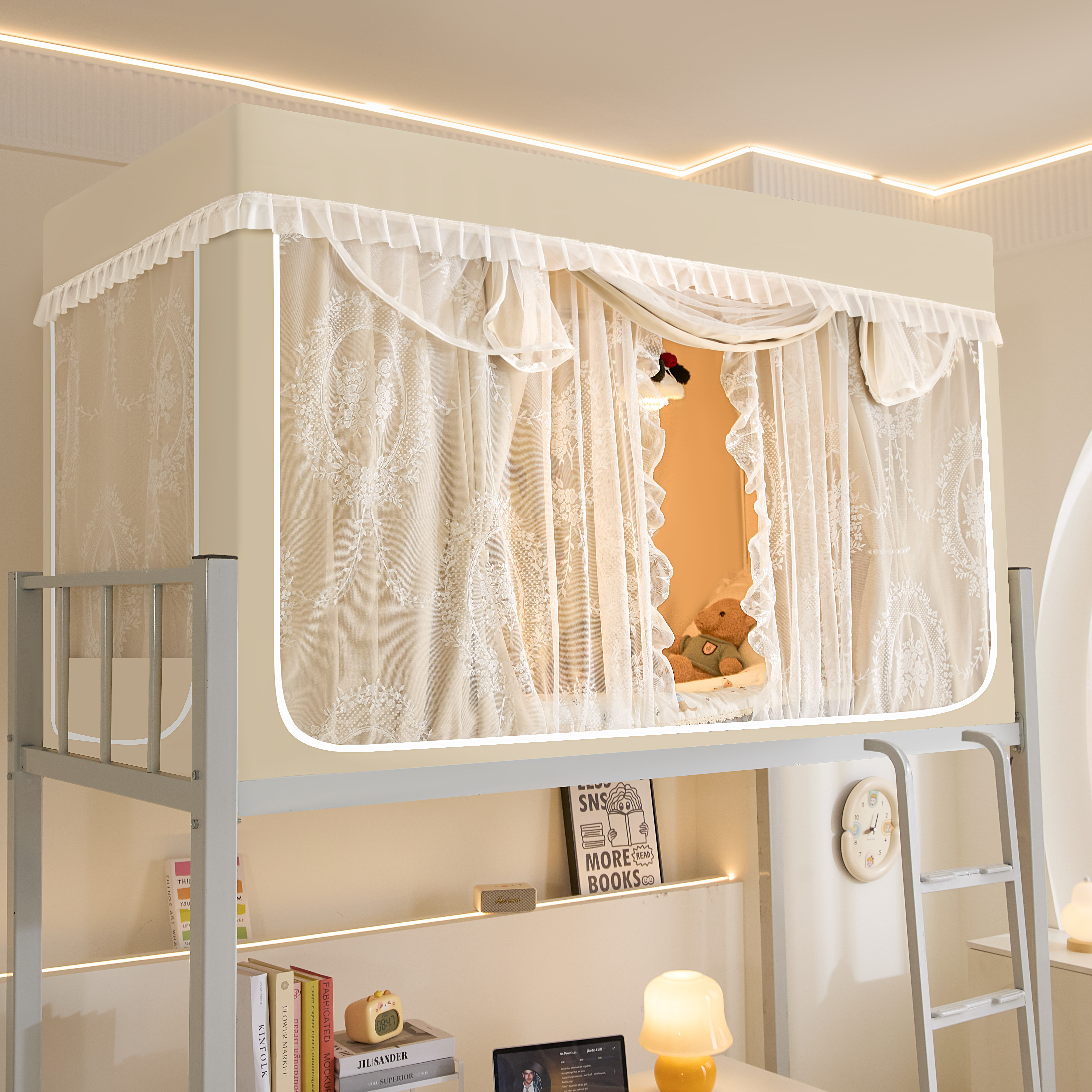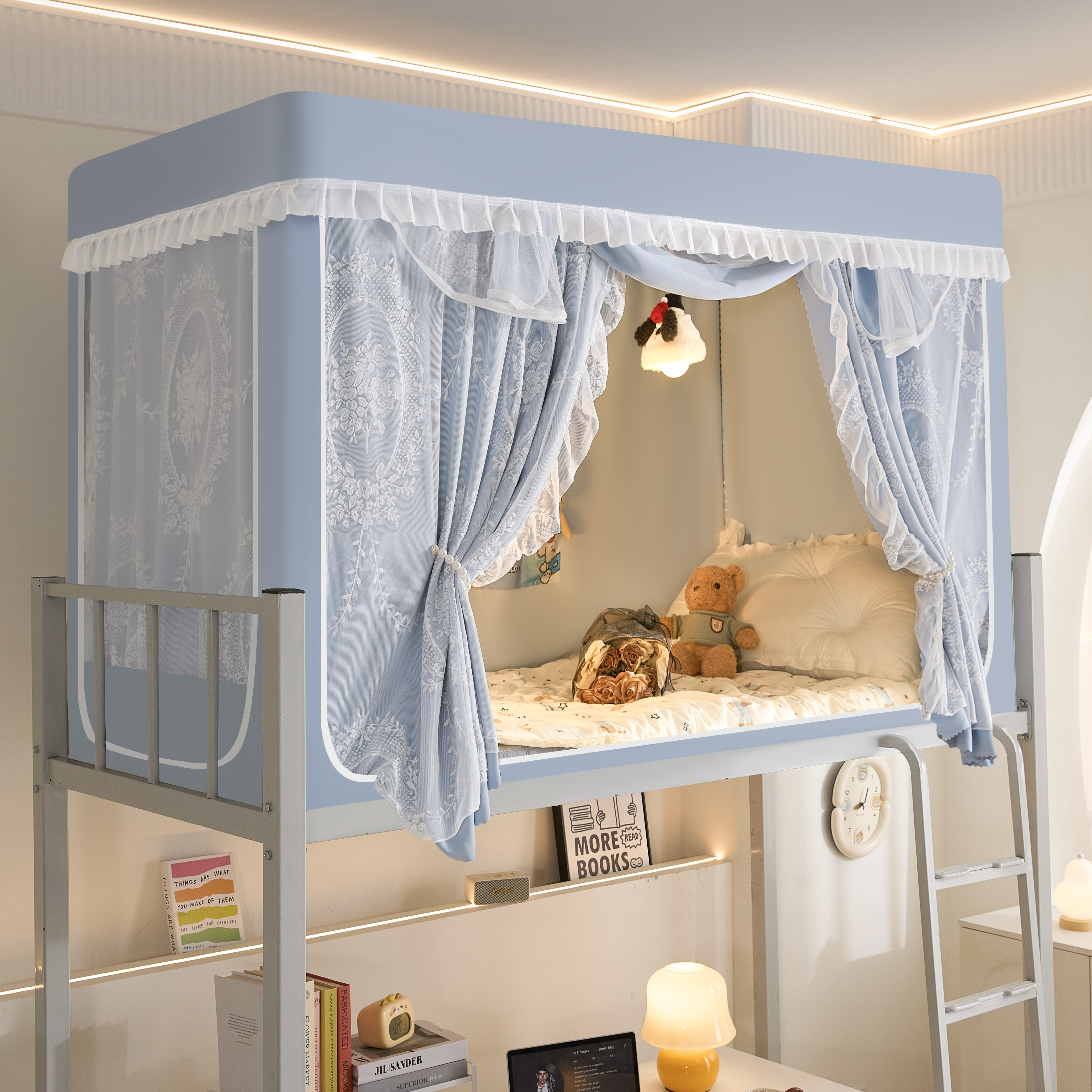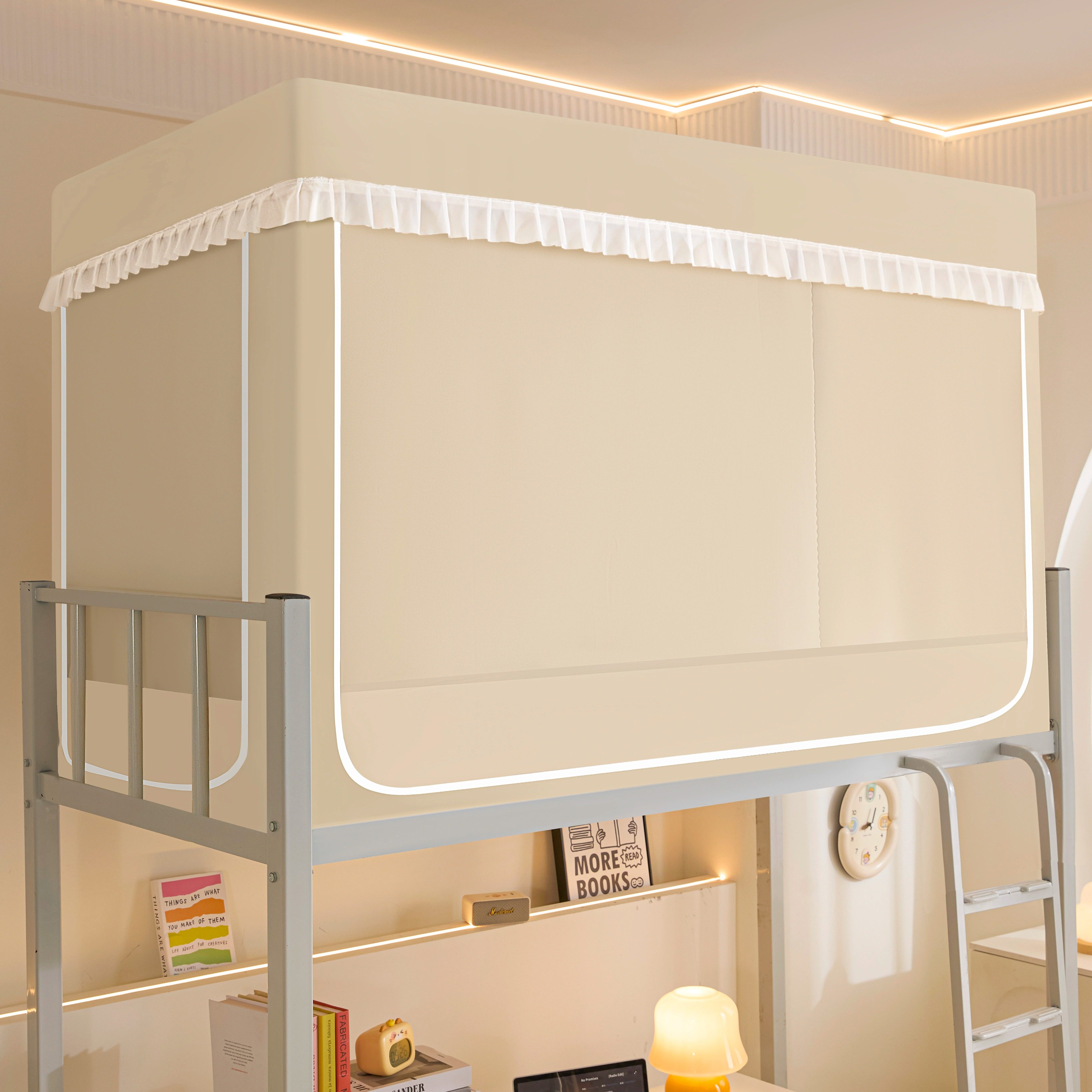 📚 梭织布无涂层全包型强遮光大学生宿舍蚊帐床帘一体式支架上铺专用