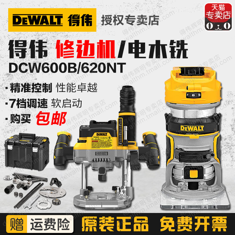 📚 墨西哥进口得伟20V充电修边机DCW600B无刷电木铣DCW620NT木工雕刻