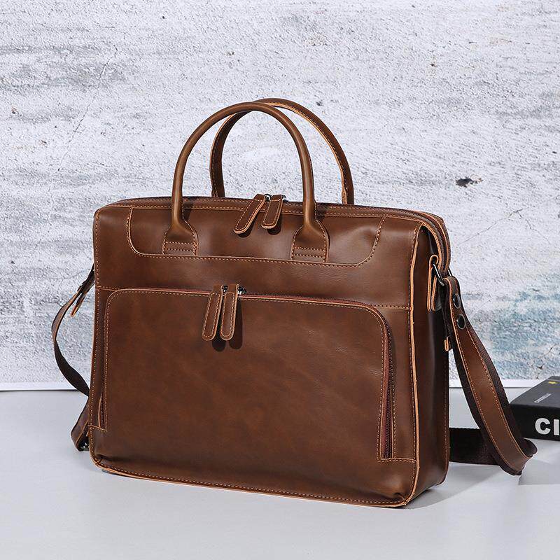 📚 Brand Men's Briefcase Handbag Crazy Horse Pu Leather Me新款