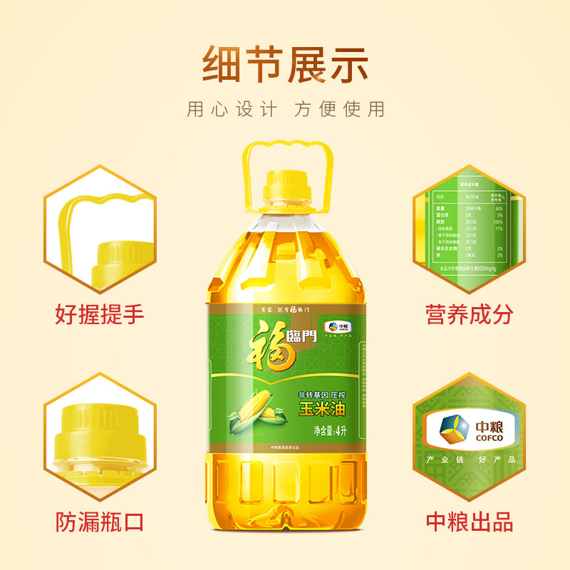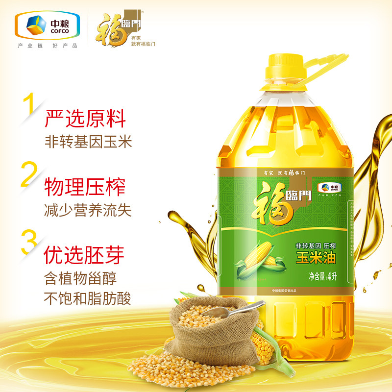 📚 中粮福临门非转基因压榨玉米油4L家用食用油营养甄选原料cn