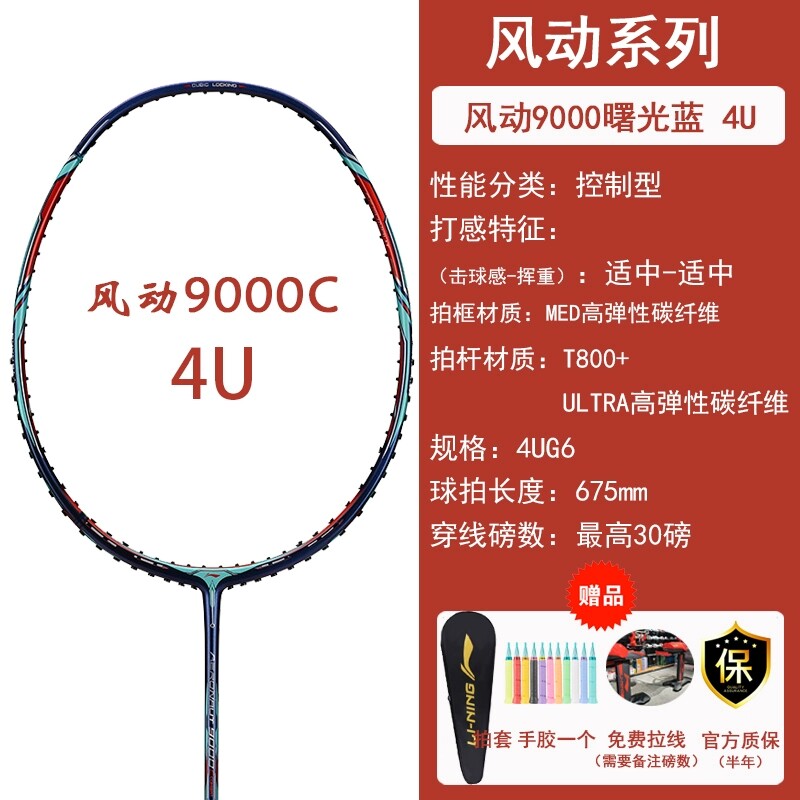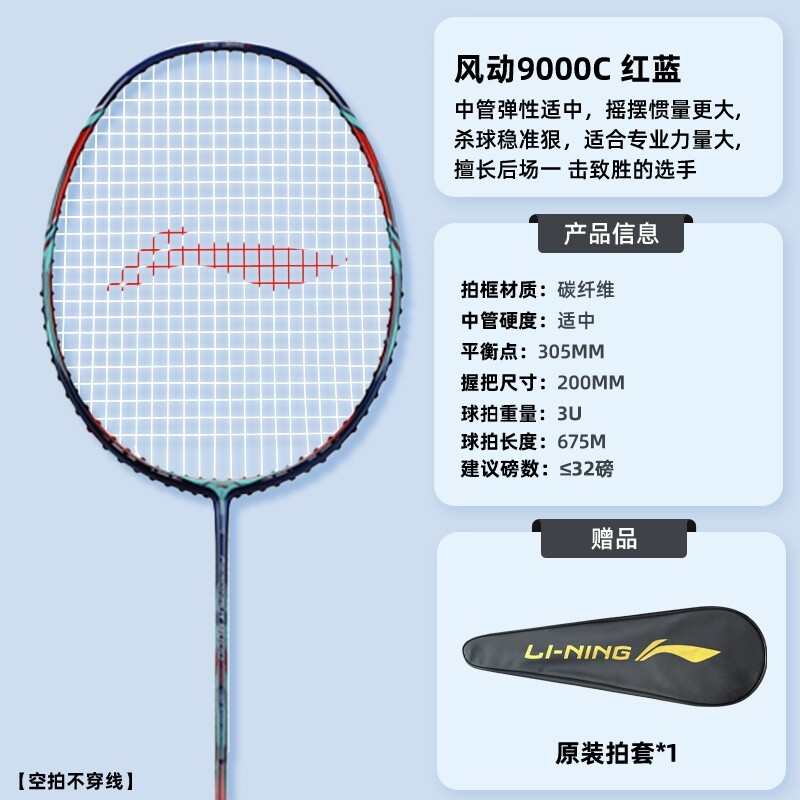 📚 李宁风动9000C专业羽毛球拍进攻控制速度型单拍全碳素风动9000