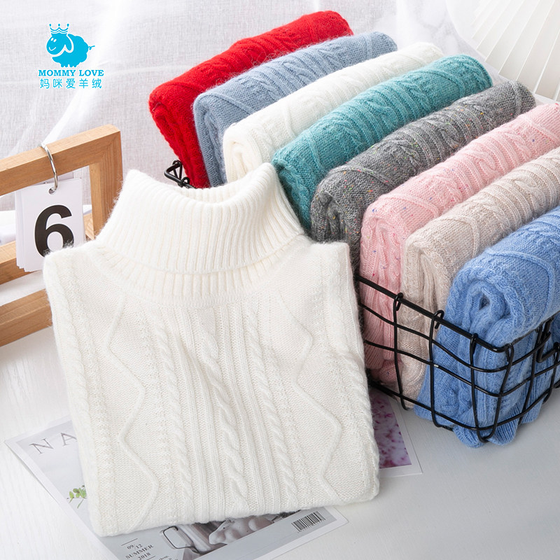 📚 儿童羊绒衫白色毛衣女童高领冬季中大童宝宝针织打底衫男童羊毛衫