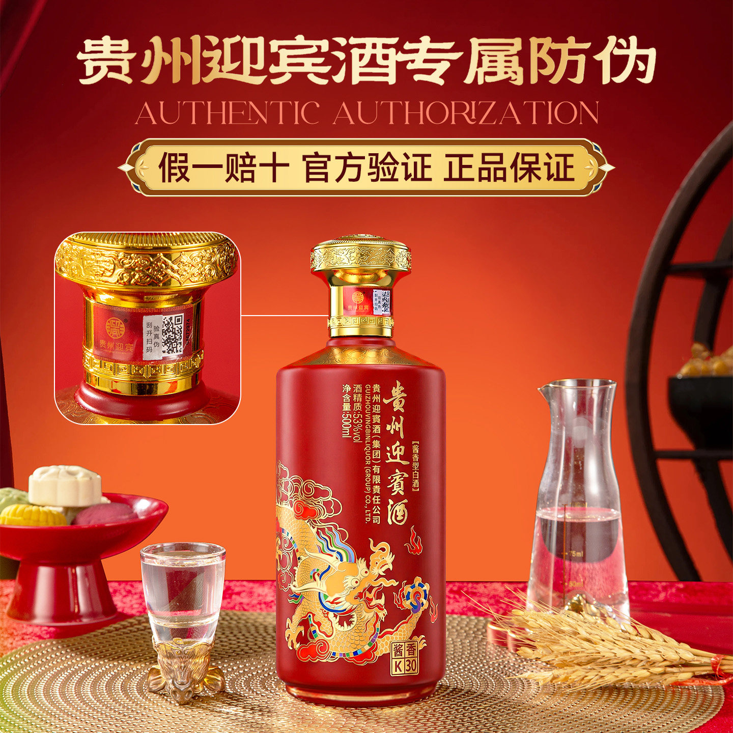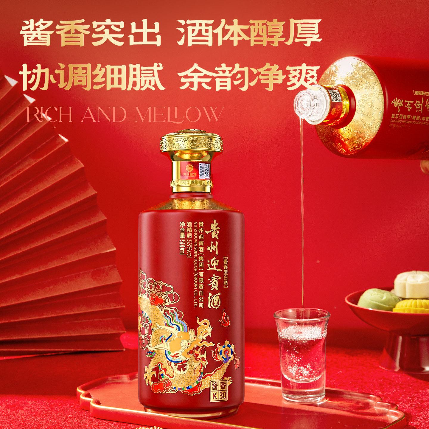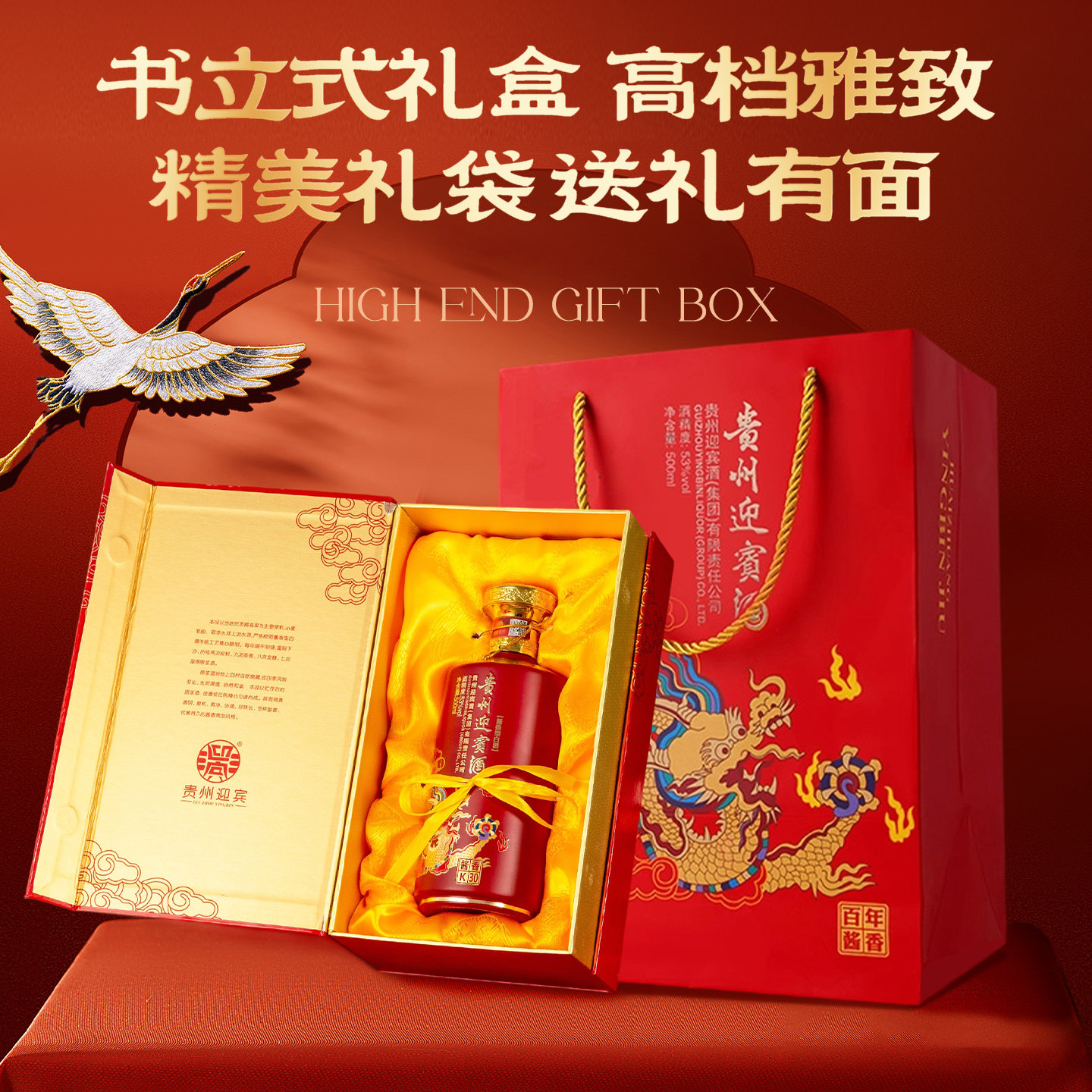 📚 贵州迎宾白酒整箱6瓶婚宴用酒酱香型礼盒装贵州酱酒白酒纯粮食酒
