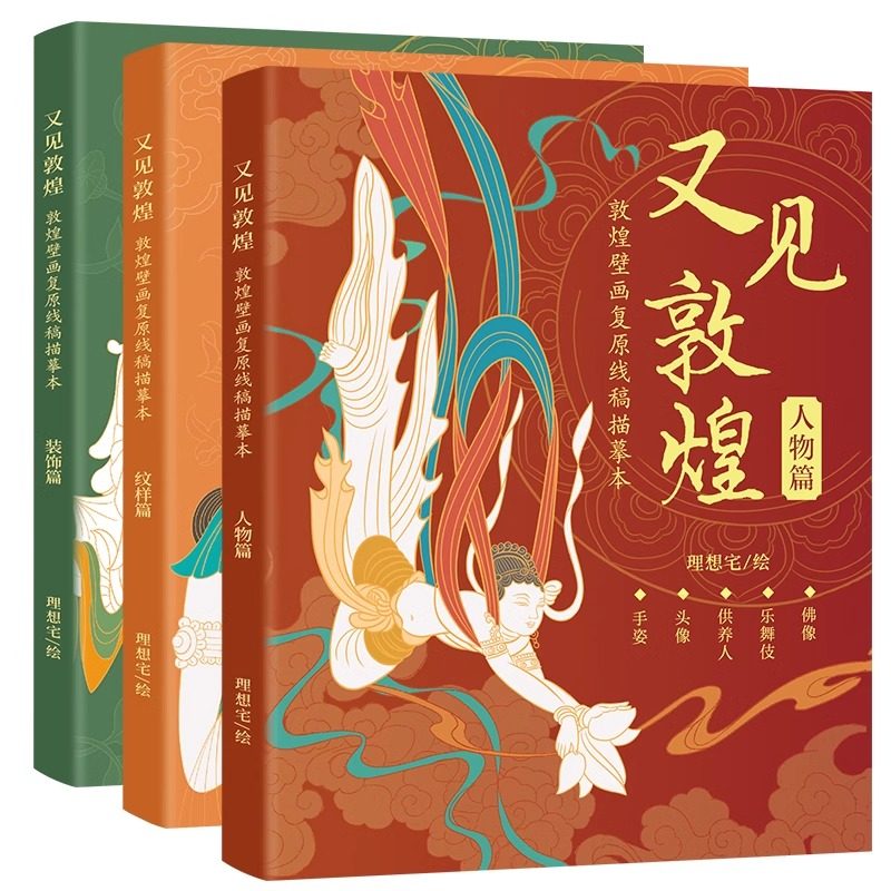 📚 全三册 又见敦煌描摹本 人物篇+装饰篇+纹样篇 敦煌壁画线描画本精品集佛像描红白描一念敦煌画本画像工笔画临摹画册纹样线稿书籍
